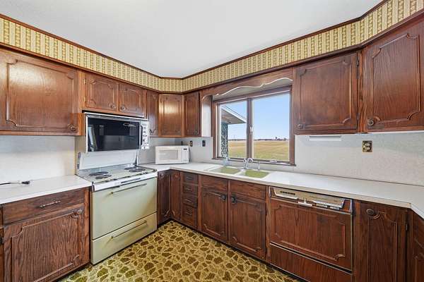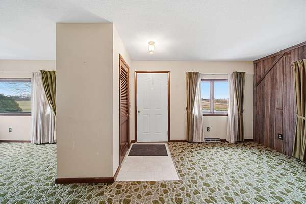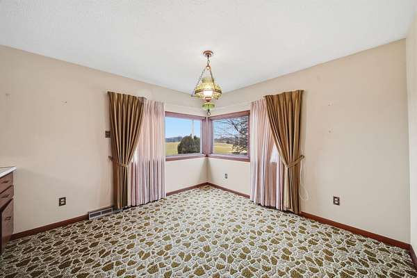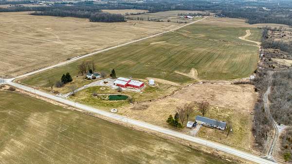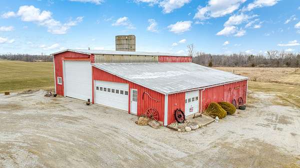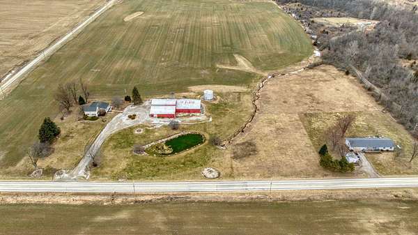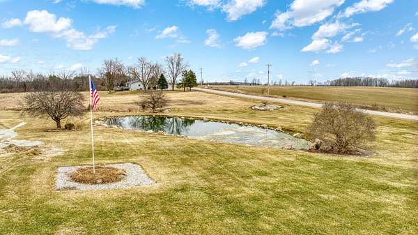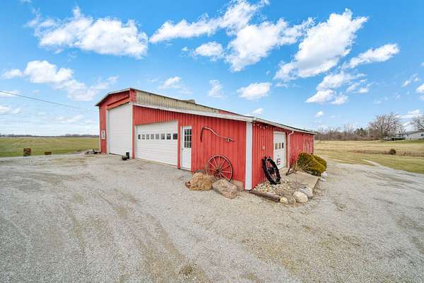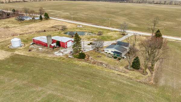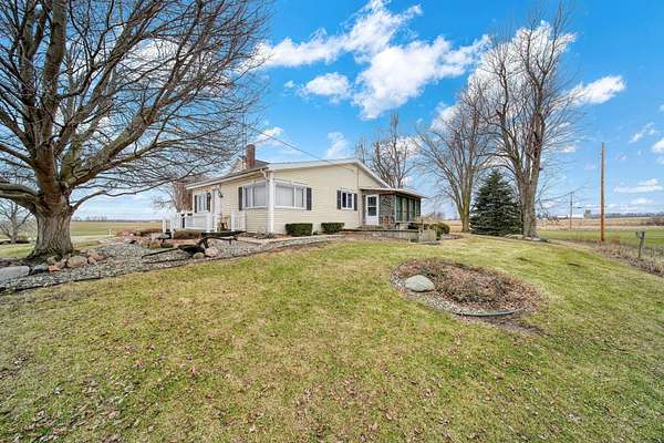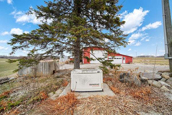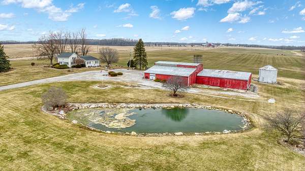 Peaceful country setting on 5.28 acres surrounded by farmland! This 3-bedroom, 1-bath farmhouse offers over 1,900 sq ft with an open kitchen and dining area, spacious family room and living room, plus first-floor laundry/mudroom. Two bedrooms are located on the main floor. The bathroom has been updated with a walk-in shower, and the home is equipped with a Generac generator for added peace of mind. The property features a pond and multiple outbuildings including a 55x58 barn with attached 65x42 barn, 12x12 shed, and a storage bin, offering plenty of space for storage, hobbies, or livestock. This property is part of a trust and is being sold as-is. Solid home with great potential--just ready for a refresh and updates.