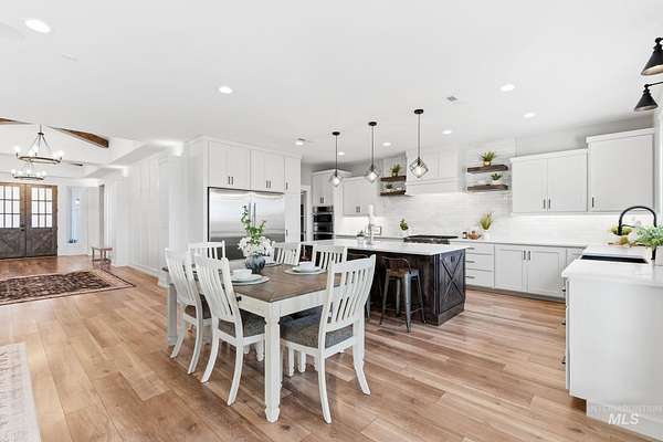 Set on 1.88 private acres in Middleton, 14947 Red Barn delivers the quiet country lifestyle buyers dream of. A setback drive opens to sweeping views and endless sunsets where acreage truly meets view property. This single level home offers soaring ceilings, exposed beams, and light filled spaces anchored by a stunning chef's kitchen with oversized island and expansive butler's pantry. Walls of glass frame the backyard oasis complete with pool, patio, and room to roam. The primary suite features a spa inspired bath, oversized closet, and a discreet hidden valuables room, plus a second ensuite style bedroom ideal for guests or multigenerational living. Enjoy a whole house Generac generator, solar panels, RV bay, RV parking, shed, and oversized garage. Space, privacy, efficiency, and comfort come together in one exceptional property built for sunsets and wide open living in every season.