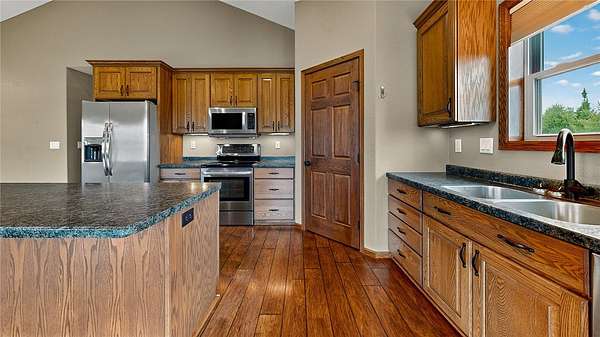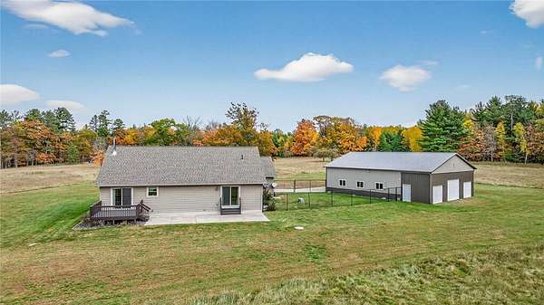 Rare find! This stunning, well-maintained ranch-style home offers geothermal heating and cooling in both the house and the outbuilding, ensuring energy efficiency and year-round comfort. Most of the land is beautifully treed with maples and oaks, featuring amazing trails throughout the acreage, a small pond, and plenty of room to fence off an area for a hobby farm. Located in a year-round recreational area, you'll enjoy endless opportunities for hunting, fishing, snowmobiling, snowshoeing, and cross-country skiing, with the Brule River, Lake Superior, and many other bodies of water nearby. The open-concept kitchen, dining, and living areas create a warm and inviting space, complemented by a spacious master suite with dual closets and a private bath. Additional highlights include main-floor laundry, an attached heated garage with epoxy flooring, a lower level with a large family room, additional bedrooms, a full bath, and generous storage space. The wood-burning fireplace in the living room can nearly heat the entire home. Whether you're looking for a peaceful primary residence or a second home retreat, this property truly has it all.
