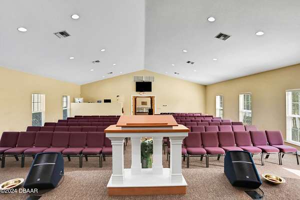 Pristine commercial building sitting on over 2 acres of prime real estate in the coveted city of Port Orange! Currently operating as a church but can easily be converted into a medical office, professional office space, nursing home or day care just to name a few. With room to expand the opportunities are endless with this parcel. Located on Herbert Street with a tremendous amount of exposure with a freestanding monument sign. Paver parking lot consists of 25 parking spaces.