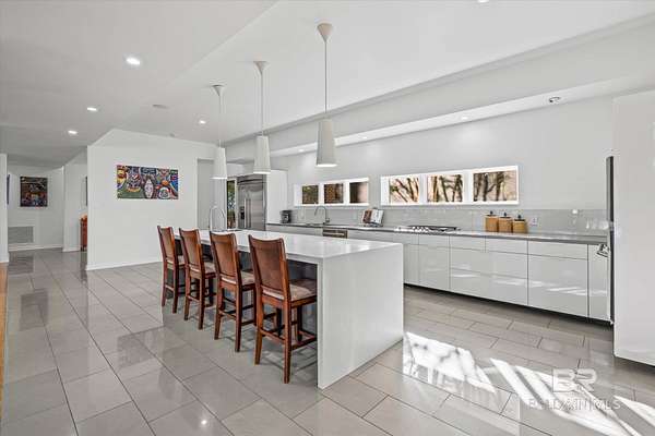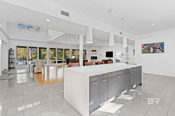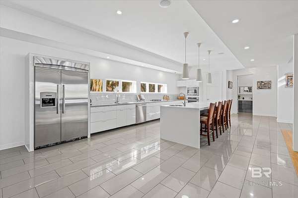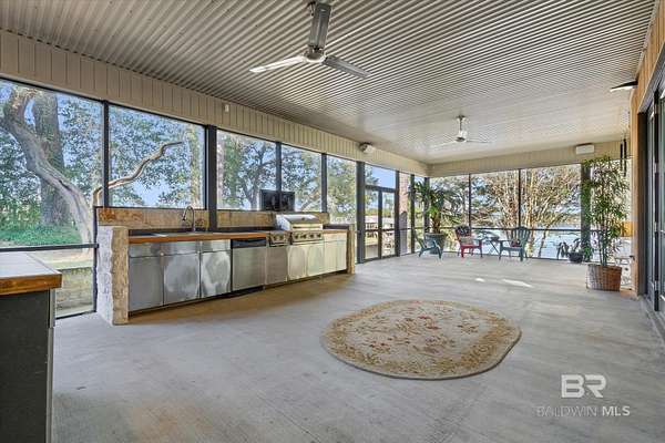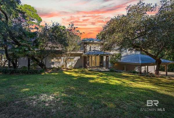 Experience refined waterfront living on this 2.2-acre estate with 186 feet of deep-water frontage along beautiful Fish River. This 5,200 sq. ft. concrete constructed home with a metal roof blends modern design with elegant Asian-inspired details and offers the perfect balance of sophistication and natural beauty.Interior Highlights:Step inside to an open, light-filled floor plan surrounded by expansive windows that showcase panoramic water views. The Thermador-equipped chef's kitchen features premium appliances, sleek cabinetry, and clean, contemporary lines. With three laundry rooms, generous living areas, and thoughtful design throughout, the home delivers both comfort and functionality in every detail.Exterior Features:Enjoy seamless indoor-outdoor living with a screened outdoor kitchen featuring a built-in grill, dishwasher, sink, and refrigerator ideal for entertaining by the river. The property includes a sprinkler system, heated and cooled metal building with a car lift, and a second metal building with RV storage. Surrounded by mature trees and natural landscape, this estate offers privacy, tranquility, and a true connection to the water. Buyer to verify all information during due diligence.