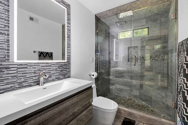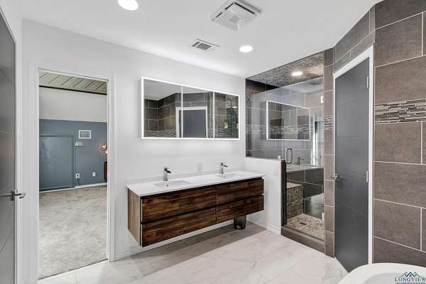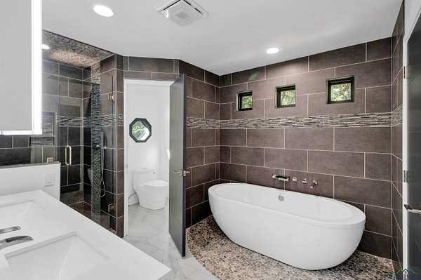 Looking for space, privacy, and modern updates? This beautifully updated 3-bedroom, 2-bath home sits on 5 gorgeous wooded acres just minutes from Tyler. With 2,400 sq ft of living space, there's room to spread out and enjoy peaceful country living with all the conveniences nearby. Inside, you'll find vaulted ceilings and a wall of windows in the living room that bring in tons of natural light and showcase the stunning views. The home has been fully updated with a brand-new roof, fresh paint, new fixtures and doors, updated kitchen and baths, and spray foam insulation underneath for better energy efficiency. The true master suite is upstairs, a spacious retreat featuring a beautifully updated bathroom with a soaking tub, walk-in shower, and dual vanity. Downstairs, you'll find a comfortable guest bedroom, full bathroom, and a newly constructed bedroom that could easily serve as a second master. The newly built deck is perfect for relaxing or entertaining and has been reinforced to support a future bathroom addition directly off the new bedroom, if desired. Other great features include a tankless water heater and a gated entry for added peace of mind. Don't miss your chance to own this perfect blend of country charm and modern comfort.