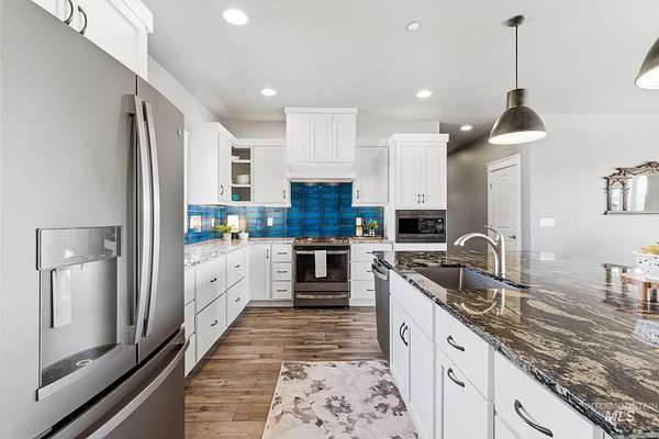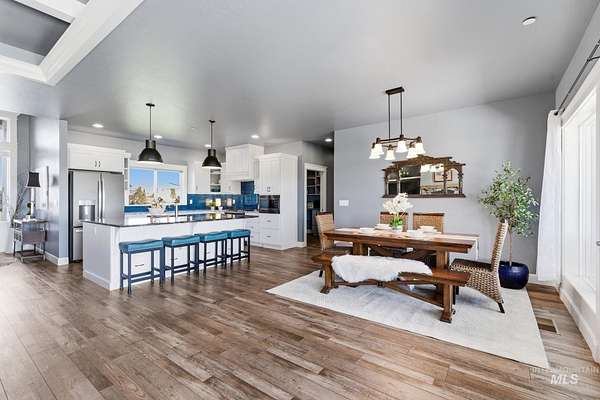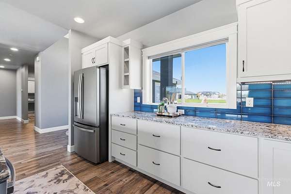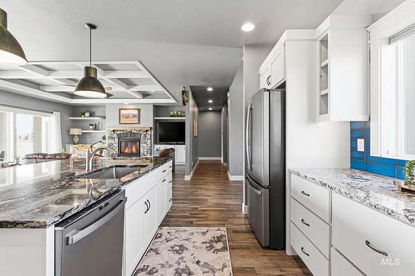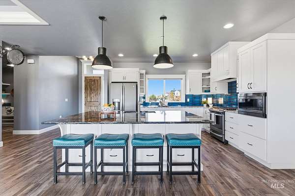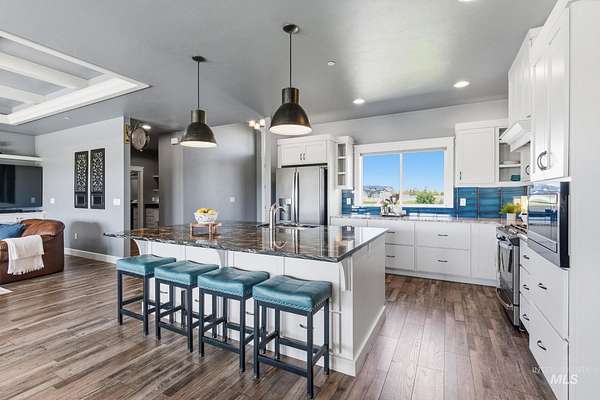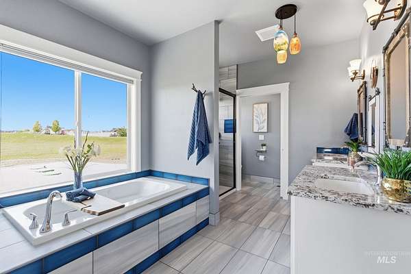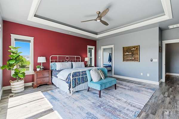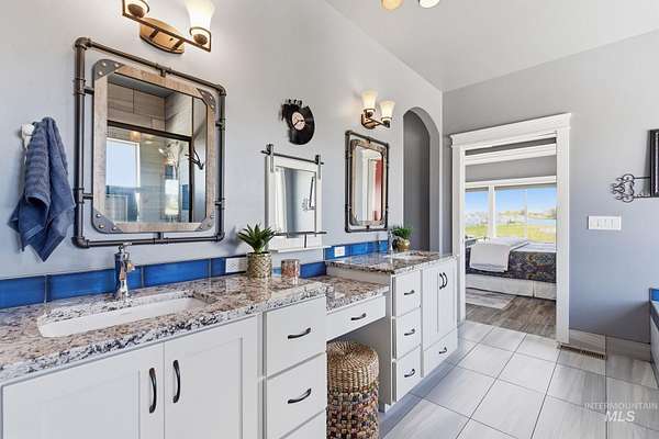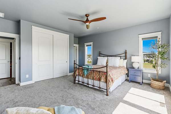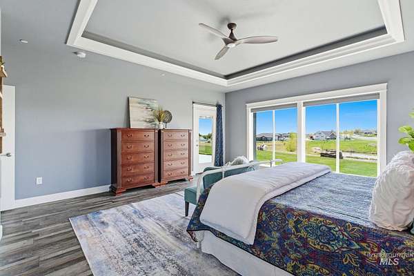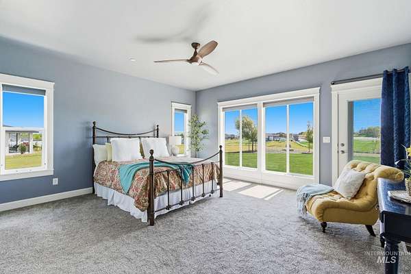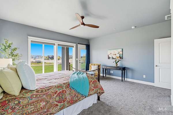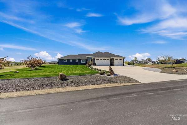 Wake up to wide-open skies and the kind of quiet that's hard to find. This one-level retreat on nearly 2 acres in Albion Acres puts you outside city limits - no city taxes, no city noise - just 31 neighbors who value space and privacy as much as you do. Bring your dreams! Ample space to build your ideal shop, plant your dream garden, or bring your horse (or horses!) - with plenty of room to roam and create your own private equestrian paradise. There are already 25+ lavender plants established and ready to thrive alongside your future grapevines. Spend mornings with coffee watching the sunrise through a wall of windows that spans the entire back of the home. Every bedroom opens directly to the patio or walkway, so indoor-outdoor living isn't a feature - it's a daily habit. Dual masters at opposite ends of the house mean guests or multigenerational family have their own world entirely. The garage handles your trucks, toys, and projects. Pressurized irrigation keeps things green without touching your well. Evenings? Curl up by a fireplace that actually heats the room, not just the mood. The neighborhood paths wind past a pond and creek right on your lot. Close to the freeway when life calls. Far enough away when it doesn't.