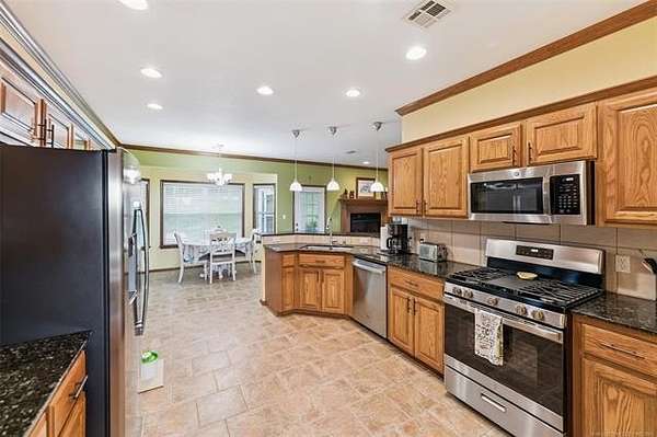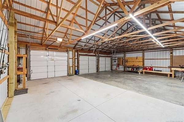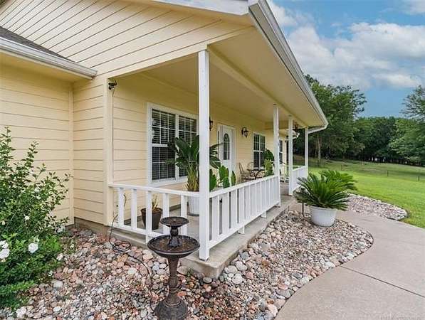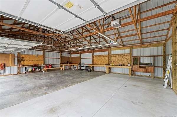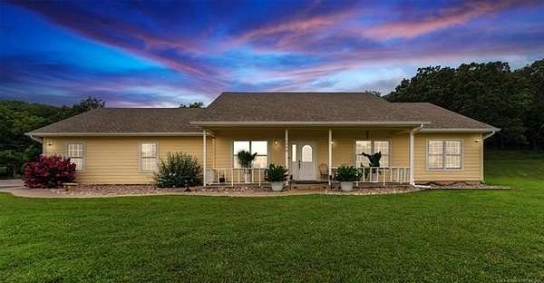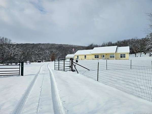 Welcome to your new country oasis just 5 minutes West of Pryor and 10 minutes from the MAIP with easy commutes to Tulsa or Springdale, AR. This 5 acre mini ranch is nestled among the trees of Osage Hill complete with an immaculate 3 bedroom, 2.5 bath home featuring a new high efficiency CH&A in Aug and new Roof, Fresh paint inside and out, new stainless appliances, HWT, Instant hot water loop, lighting, updated bathrooms, shop expansion and more in the last couple years. The inviting covered front porch and entryway leads to a great room with fireplace and a formal dining room. A spacious kitchen w/breakfast nook, tons of cabinets and counter space and a large walk-in pantry. Thoughtfully laid out floor plan has 9' ceilings and plenty of storage inside and out! Outside you will find a 30'X40' 3-bay shop with 3 overhead doors including one 8'X10" door with electric opener to accommodate a large vehicle and offering ample space for all your equipment, tools, and projects. The property offers tranquil views and abundant wildlife a perfect blend of country living and modern conveniences, this property has it all. The screened-in back porch and the patio which is stubbed for your LP gas grill a perfect outdoor space for entertaining. The attached oversized 2-car garage is heated and cooled and includes a walk-in safe room. This property is fully fenced + an electric gate and Ring home security system for added peace of mind. Don't miss out on this rare opportunity - schedule your private tour today!