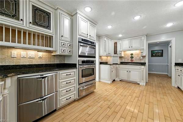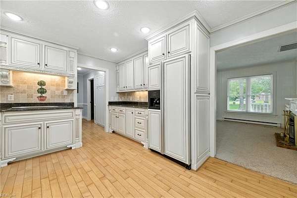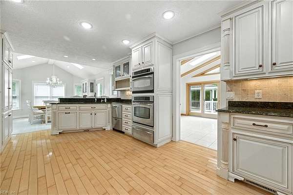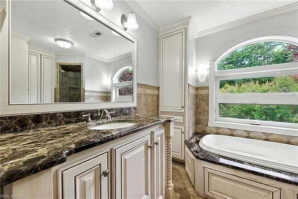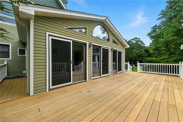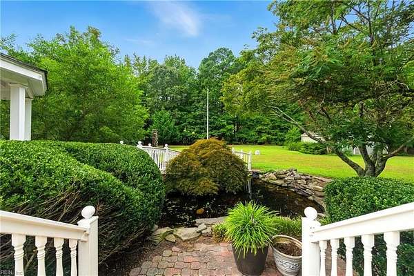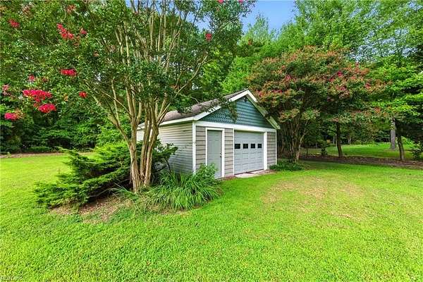 Located just minutes from Yorktown and Williamsburg, this custom home offers a beautifully crafted kitchen with abundant cabinetry, pantry, and built-in bar stools, dining table, and hutch--all with under/in-cabinet lighting. Enjoy a cozy gas fireplace in the living room and a spacious sunroom with views of a running pond, deck, and gazebo. Includes a 1st-floor bedroom/office and a luxurious primary suite with heated floors, walk-in shower, soaking tub, two walk-in closets, and flex space for an office, gym, or den--with private garage access. Features a 2-car attached garage, detached oversized garage/workshop, whole-house generator, central vac, and a utility room with sink and storage. A perfect retreat not far from history and modern amenities.