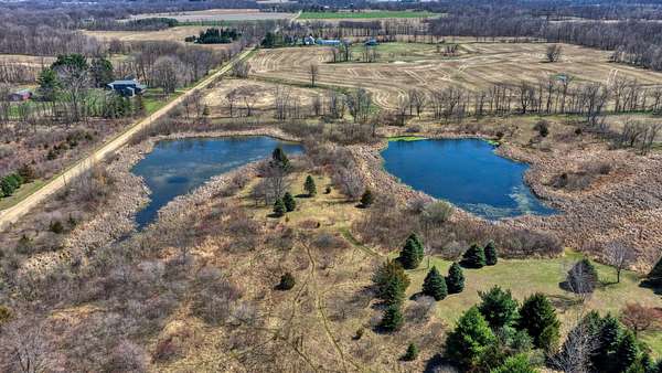 Rare Find! Escape to your own private oasis on this stunning 21-acre agricultural property featuring two scenic ponds and unmatched serenity. Nestled behind mature tree rows that create a natural canopy as you wind down the private drive, this gated retreat offers the perfect blend of privacy and convenience. The heart of the property showcases a pristine 32x64 pole barn with cement flooring - meticulously maintained and organized for endless possibilities. Connected living space overlooks the picturesque ponds, offering breathtaking views and incredible potential for a unique residence, guest quarters, or income-generating opportunity.Whether you're seeking a weekend retreat, hobby farm, or homestead, this exceptional property delivers on every front. The rare combination of acreage, water features, and existing structures makes this a truly special offering. Perfect for investors, outdoor enthusiasts, or anyone seeking their slice of Michigan paradise!