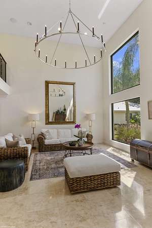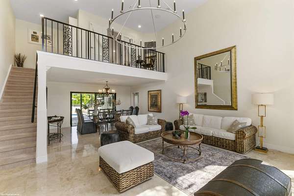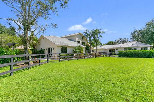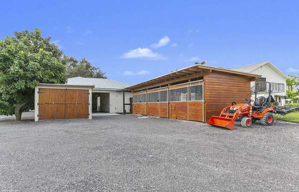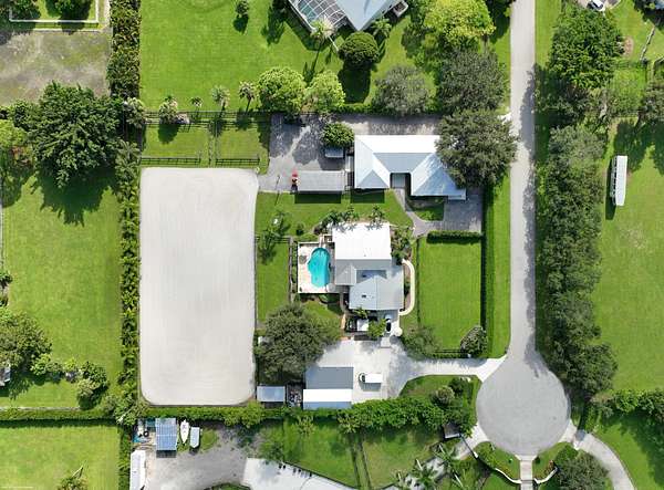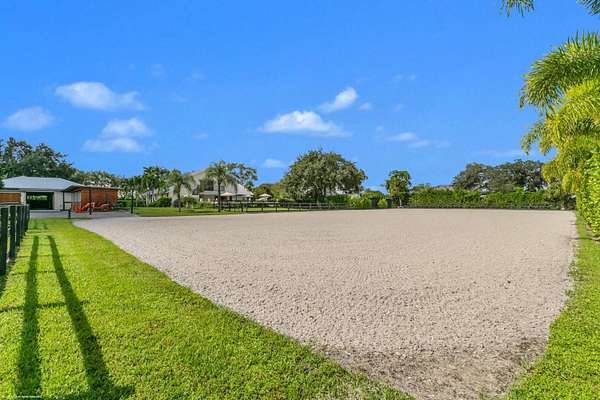 SEASONAL FARM RENTAL OFFERING. PRICE REFLECTS THE SEASONAL RATE FOR THE HOUSE & ENTIRE BARNS INCLUDING 1 BEDROOM APARTMENT FOR 4 MONTH SEASON. Inviting equestrian property with everything you need to enjoy the Wellington equestrian lifestyle! Located in the esteemed neighborhood of Paddock Park 2 on just under 2 acres, this farm boasts a beautiful 4 bedroom, 2.5 bathroom pool home, a newer 7 stall barn+ 3-stall shed row barn w/ great grooms accommodations, a large GGT arena and 4 paddocks. Located close by Wellington's well maintained bridle trail system and with a short golf cart ride to the horse show as well as stores& restaurants, this is a great offering as a seasonal home! The two-story home features a beautiful open concept floor plan, vaulted ceilings and tons of natural light. The first floor includes 3 guest bedrooms, one full bath and one half bath, family room and a formal dining area. The charming kitchen offers granite countertops, stainless appliances, ample storage, an eat-in breakfast area as well as a custom wine bar with a wine cooler. Upstairs you will find a luxurious primary suite with a balcony offering great views of both the pool and riding arena. A spiral staircase leads down to the enclosed patio that boasts a built-in grill, stunning travertine tile surrounding the free-form, heated saltwater pool and spa.