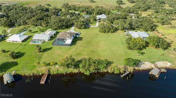 This stunning riverfront homesite is truly a rare find-one of only two vacant riverfront lots in the entire community! Enjoy breathtaking panoramic views of the Intracoastal Caloosahatchee River and build the home of your dreams with direct deep-water access to the Gulf, Atlantic Ocean, and Lake Okeechobee right from your backyard. Riverbend is a true hidden gem-nestled just outside the city limits, yet offering the peaceful feeling of being worlds away. From its majestic oak-canopied entrance and double-gated security to the community pool, clubhouse, and tennis court, this neighborhood has it all. The low monthly HOA fee of just $330 includes all these amenities plus lawn maintenance, water, sewer, irrigation, and even a storage area for boats and RVs.