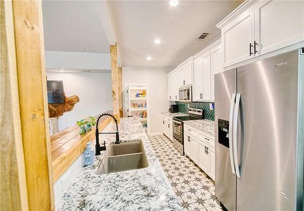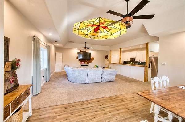 The Possibilities are endless! All new comfort and style come together in all the right ways. Once a countryside golf course and clubhouse, this beautifully redesigned Barndominium now lives its second life as a warm, modern retreat set on 25 acres of open land with many updates to enjoy. Outside, brand new paint, new roof & new guttering installed - Dec. 2025. Nov. 2025 - barbwire fencing added at back of property, May 2024 - garden/animal fencing installed, Nov. 2023 - picket fencing installed. Inside, everything completed in 2024! New rooms, new flooring in all rooms. New walk-in closets in the bedrooms and large walk-in pantry in the kitchen. In 2024, the kitchen was reconstructed with granite counters, new cabinets, flooring, all new stainless appliances that stay. Both bathrooms were redesigned in 2024 with new cabinets, new flooring, granite counters, walk-in shower and tub. Washer & dryer purchased in 2023 both stay. Mature trees frame the property, including fruit trees, while a peaceful pond reflects changing skies and visiting wildlife. A separate fenced area for the kids to play and run. A nearby rail line adds to the area's rural character for those who enjoy nostalgia. The possibilities here are endless and that's exactly what makes it special. A hobby farm or creative retreat. A small equestrian haven. A nature inspired work space for remote professionals. If you're searching for something authentic & beautifully connected to the land...this is a property you must see to truly understand. Enjoy instant equity, this home was recently appraised for $470,000 in the fall of 2025 (Before the new roof, new gutters and exterior paint). Come walk the acreage, stand by the pond, watch the light change. You'll know if it's yours.