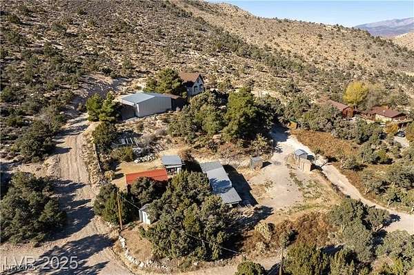 For those seeking space, privacy, and mountain living just outside Las Vegas in Mountain Springs, this 2.39-acre, no HOA property delivers accessibility. Located 30 min from Las Vegas Airport, about 15 min from town & shopping, with maintained road access. Surrounded by mountain terrain with sweeping views of the Humboldt-Toiyabe National Forest as your backdrop. Two separate residences with individual entrances provide multi-generational living or hosting guests. The main home features 3,394 SF with 4 BDR, 3 BATH, and a large loft. A separate 275 SF 1 BDR cabin/casita with loft, outdoor shower & toilet, creating a glamping-style experience. Usable flat land supports many uses, including an up to 12-horse barn, corrals, chicken coops, livestock areas, a mechanical shop, and covered RV & multi-vehicle parking. A private artesian well, power, owned gas tank support a self-sufficient lifestyle with optional off-grid potential. Enjoy year-round outdoor fun and a personal mountain retreat.