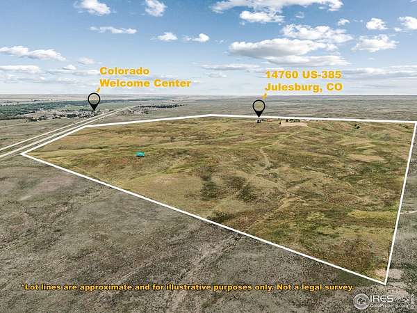Now offering the opportunity to own 118 acres of serene, raw land in Northeastern Colorado. Perched atop a hill, this remarkable property overlooks Julesburg and boasts sweeping 360-degree panoramic views.An adjacent 40 acres-featuring a farmhouse, shop, and barn-is currently under a residential lease through April, with the full 158 acres anticipated to be offered together beginning in March. Should the 118 acres be separated from the improved 40 acres, there is the ability to obtain a full domestic well.A survey was completed last year, and example parcel layouts are available for those interested in subdividing the land into approximately 35-acre parcels (see example parcels in photos).With expansive views, flexibility, and multiple potential uses, this property presents a rare opportunity with countless possibilities.
