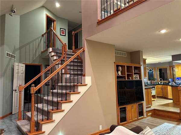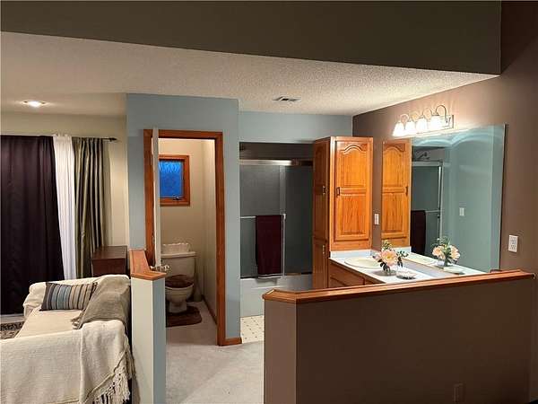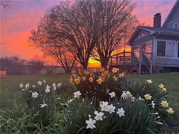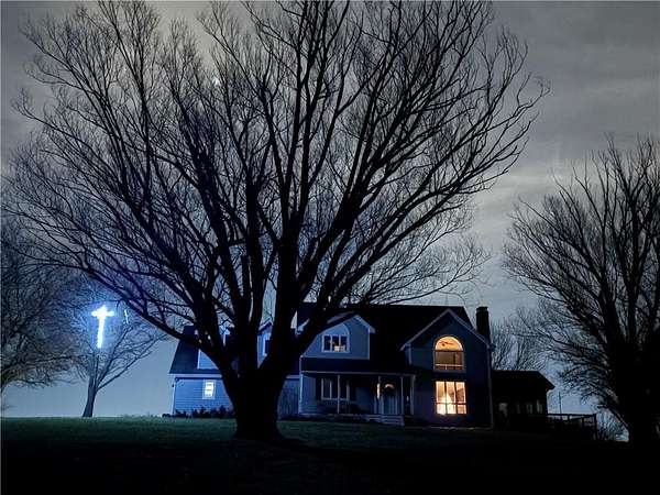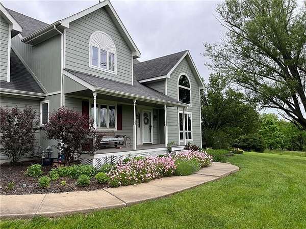 Home on 10 Scenic Acres with Spring-fed Pond, Docks, and Barn - Minutes from Johnson County. Imagine the possibilities - a country oasis within easy reach of the Kansas City metro. This rare 10-acre property offers a peaceful setting with mature trees and open land, a combination that's becoming hard to find today. Here you can escape to a bit of tranquility, while still being part of a welcoming rural community. Showcasing nearly 5,000 sq ft of country living space, 5 bedrooms and 4.5 bathrooms, this home gives you plenty of room to spread out, while still providing cozy gathering spaces. The sunroom captures peaceful views of the natural landscape, and often at dawn or dusk you'll see deer passing by. Large living room windows look out on the beautiful 2-acre spring-fed pond, complete with a swim dock, diving board, and a unique three-level fishing dock. The finished basement has a separate entrance to a one-bedroom apartment with living room, kitchenette, pool table, full bath and bar. This land is perfect for an active outdoor lifestyle, with room for gardening, animals, hobby farming, and recreation. Enjoy privacy, open space, and beautiful natural views in every direction. This homestead was built for enjoying the open air - swimming and playing on the water, fishing at sunset, evening gatherings under string lights, or just gazing at the stars (no light pollution). And don't forget to take your morning coffee on the front porch, overlooking the front pasture and the pond. A 30 * 40' outbuilding stands ready to serve as your workshop or barn, with electricity, sliding equipment doors, garage doors and a 10 * 40' covered concrete pad. Whether you're working the land here or relaxing on the land, this is one truly special place.