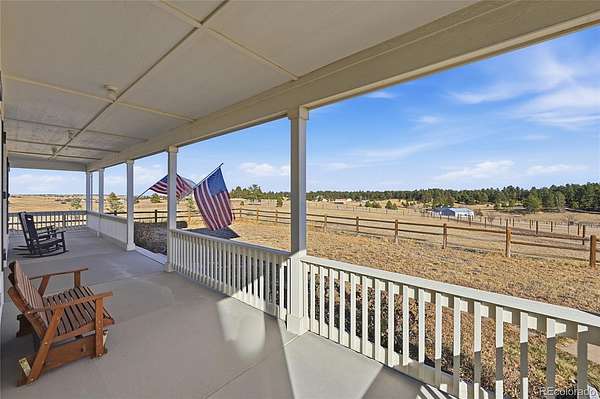Welcome to 1498 Santa Fe Trail, a rare and thoughtfully designed equestrian estate nestled on nearly 10 acres offering sweeping views of Pikes Peak, the Front Range, and the Eastern Plains. Just a scenic 30-minute drive from downtown Parker, Castle Rock, and Colorado Springs, this property was designed with the horse enthusiast in mind. The well-appointed barn features four oversized stalls, a heated tack room with washer and dryer hookups, wash and grooming stall, insulated ceilings, abundant electrical outlets, multiple turnout areas, three separate fenced and gated pastures, electric fencing, and a freestanding hay shed--providing functionality, comfort, and efficiency for both horse and owner.
