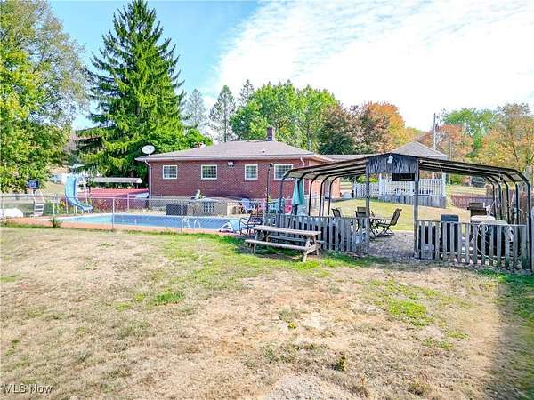 Move-in ready brick ranch home on nearly 5 1/2 acres in a beautiful country setting. This spacious property offers 3 bedrooms on the main level, with one currently used as an office, and a 4th bedroom located in the walk-out lower level. There are 2 full bathrooms, one upstairs and one downstairs. The home features a newly remodeled kitchen and living room with matching floors throughout the main level, along with a new dishwasher and garbage disposal installed in 2024.The finished basement provides a large rec room, wood burner, and plenty of additional living space. A wood-burning fireplace in the upstairs living room creates a cozy atmosphere. Mechanical updates include an electric forced air furnace and propane water heater installed in 2014 with a line run under the pool area to the outdoor grill, and a new electrical panel in 2018. Outside, enjoy an in-ground fenced pool with a new liner installed in 2024, solar cover, and a 15-year warranty winter cover replaced in 2025. A gazebo with hot tub adds another spot for entertaining or relaxing. Additional improvements include a 2-car carport, 1-car metal garage, and a barn with 2 stalls and an attached chicken coop. The acreage provides a very nice yard and plenty of room for animals, recreation, or gardening, making this an ideal property for country living with modern updates. Contact your agent today to schedule a showing!