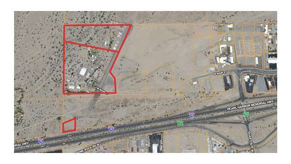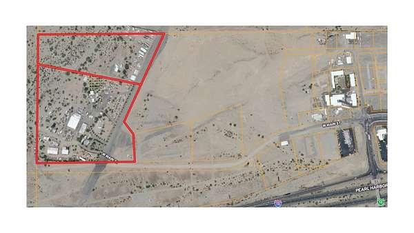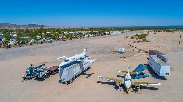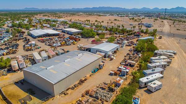 Expansive 34+ Acre Opportunity in Quartzsite, AZ. Visibility from Interstate 10 and includes a Runway, Warehouses, Residences & Hangars — Endless Commercial Potential !! This multi-parcel offering has two larger adjoining parcels and one parcel perfect for signage closer to I-10. This 34 acres is C2 Zoned with a private well, two septics, power and a city maintained road. Location is not only near I-10, but also 13 miles from the border of California, and an easy 2 hour drive from the central Phoenix area. Excellent access and visibility for a wide range of uses including RV parks, Truck parks, storage facilities, warehouse operations, vendor villages, entertainment venues, and other commercial concepts that benefit from high-traffic corridors. Property Highlights Three parcels totaling over 34 acres Power on Site Well with new pump. Two septic systems Visibility from Interstate 10 Easy access Borders BLM land Seller will consider Owner Financing with 50%+ Previous car sales business can be removed from the site within a negotiated period following close of escrow. Improvements & Structures Include: Private runway: approx. 1,400+ ft Shop Buildings: 24,604 sq ft of warehouse, workshop, or storage space Hangars: 3,782 sq ft Additional Storage: shipping containers, sheds, overhangs, and shade structures Manufactured Home: 1,372 sq ft Site-Built Wood Frame House: 1,536 sq ft Detached Garage: 960 sq ft These structures provide multiple living, rental, or workspace options, as well as flexibility for caretaker housing or on-site management.