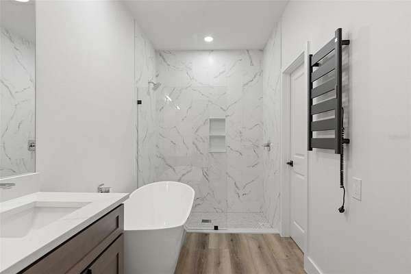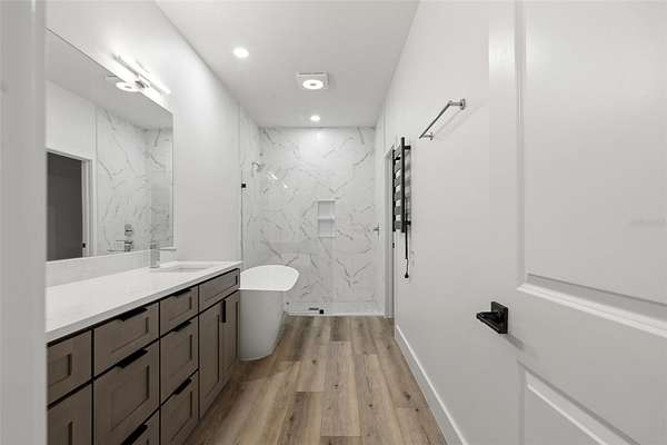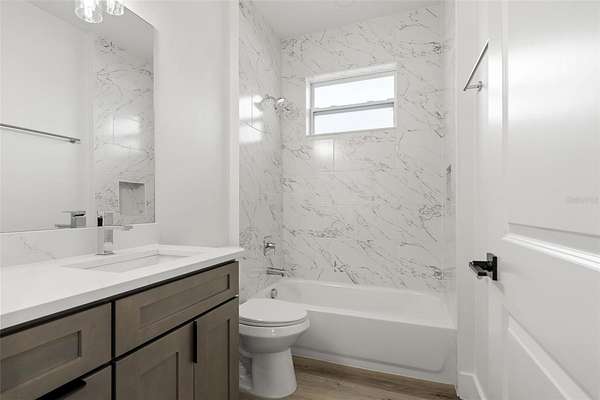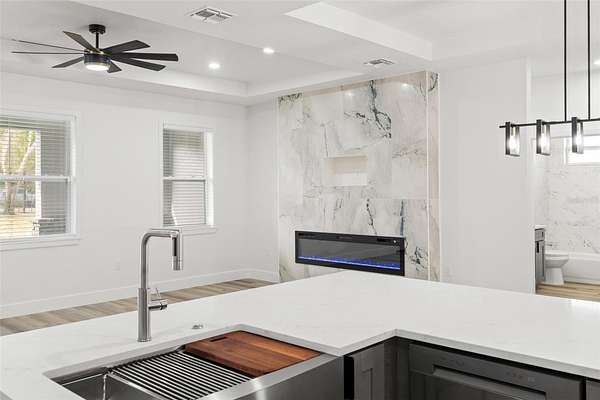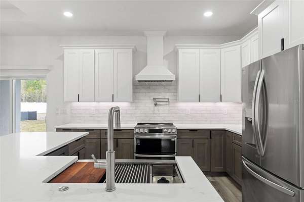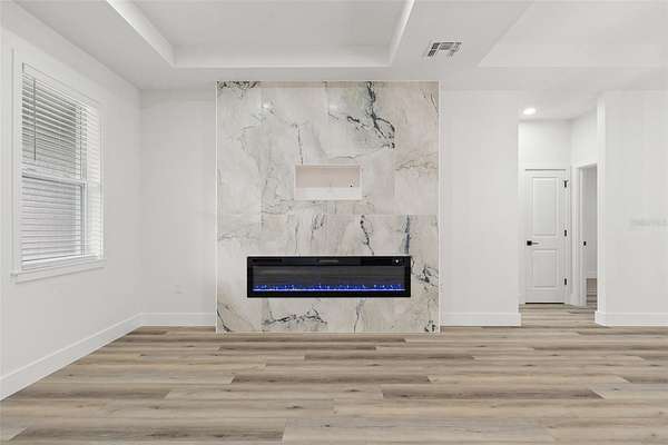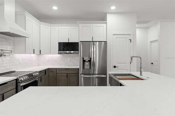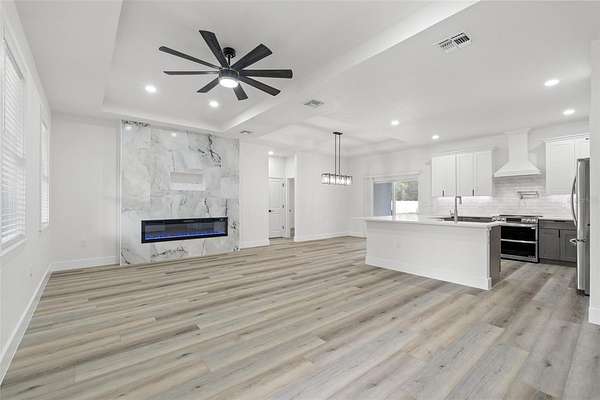 Inside, discover the signature craftsmanship of Santabarbara Homes, built with durability, efficiency, and luxury in mind. Features include concrete block construction, hurricane impact windows and doors, foam board insulation with R30 blown-in attic insulation, and individual A/C returns in every room for enhanced comfort and airflow. The home is appointed with luxury vinyl plank flooring throughout, quartz countertops, soft-close cabinetry, and thoughtfully designed living spaces that create a true turnkey experience.
