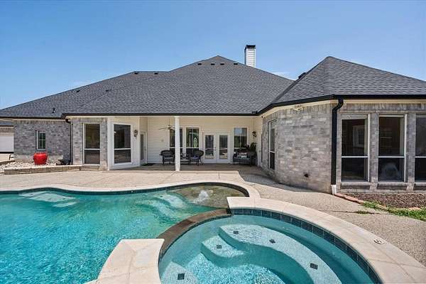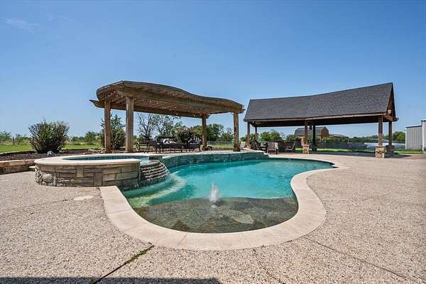 Welcome to your dream country estate with the perfect set up for a home business--an impressive 3,500 sq ft home set on 8.5 fully fenced and gated acres, offering a large, versatile space with endless potential to make it your own. This 4-bed, 5-bath home also features an office, formal dining room, and a sunny breakfast nook, making it perfect for both everyday living and entertaining. The expansive kitchen comes complete with a prep island, built-in bar seating, custom cabinetry, and a walk-in pantry. The living area is warm and welcoming, centered around a cozy fireplace with floor-to-ceiling built-ins and a wall of windows that overlook the sparkling pool area. All bedrooms include their own ensuite bathroom and walk-in closet, while the spacious primary suite offers dual oversized walk-in closets. A secondary primary suite adds flexibility, making this home ideal for multi-generational living. The 3-car garage comes with built-in storage, and the backyard feels like a private resort with an inground gunite pool featuring a tanning deck and water feature, plus an outdoor kitchen with a smoker, fryer, and prep sink. A nearby small building is perfect for a future pool house or guest space, and two additional outbuildings offer even more functionality--one currently used as a fenced poultry coop, and the other as the kennel office. There is also a bank of solar panels. The showstopper is the 3,700 sq ft professional-grade kennel facility, designed for breeders or pet care professionals, featuring 20 raised 16'x4' runs with Lixit water adapters and free feeders, a dedicated septic system, full HVAC, industrial dehumidification refreshing air every two hours, a dog wash station, photo room, multiple rooms with 20 bank cages, washer, dryer, dishwasher, and refrigerator. Whether you're envisioning a peaceful family retreat, a working ranch, or a turnkey home-based business, this unique property offers the space, amenities, and flexibility to bring your vision to life.