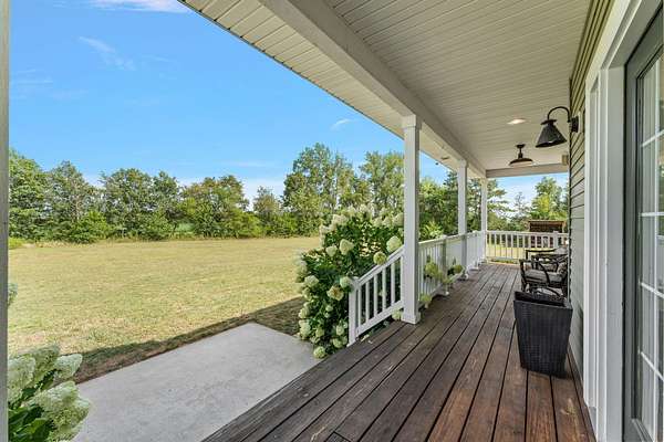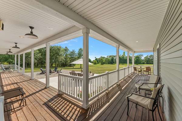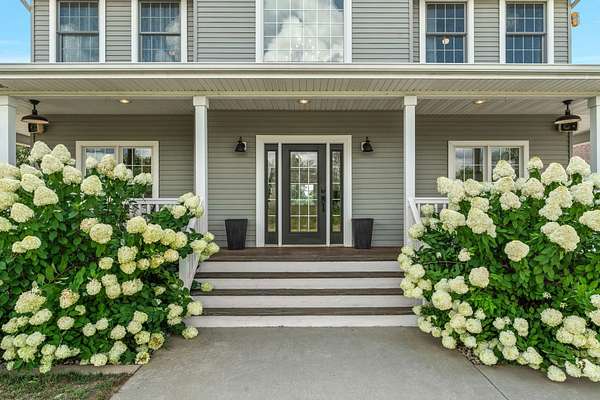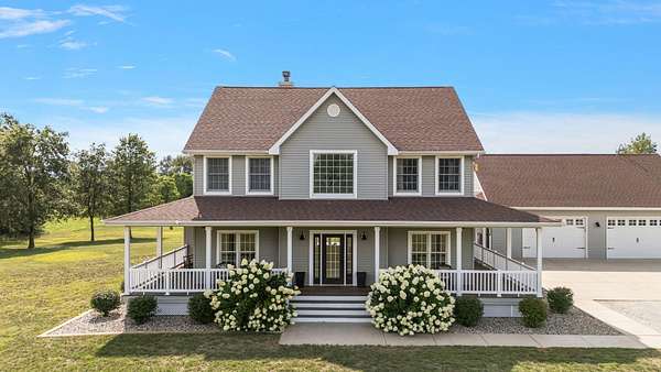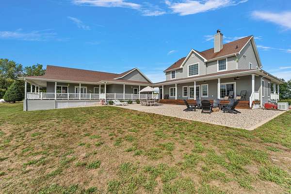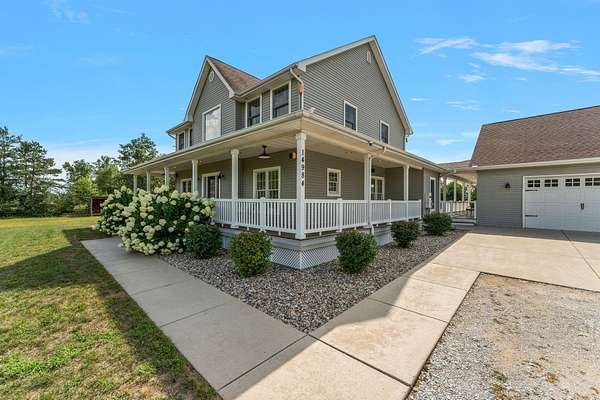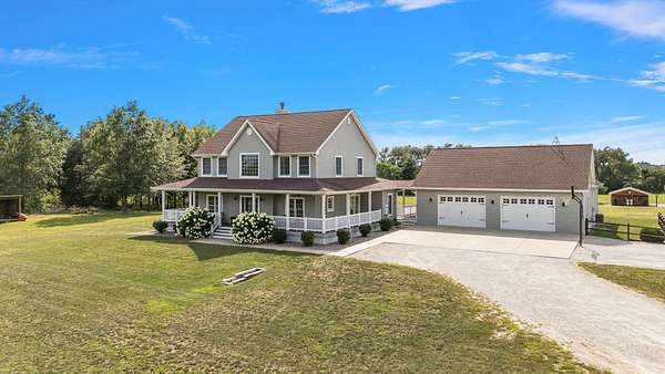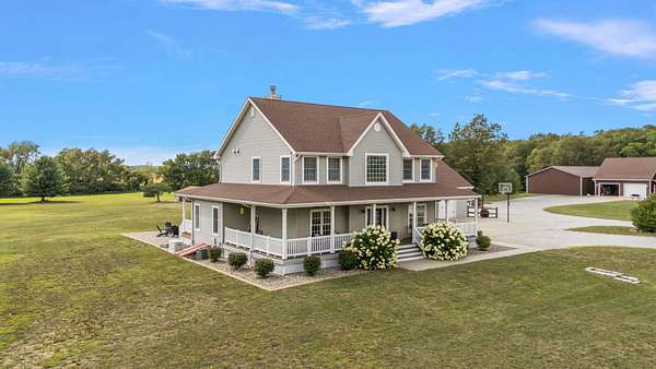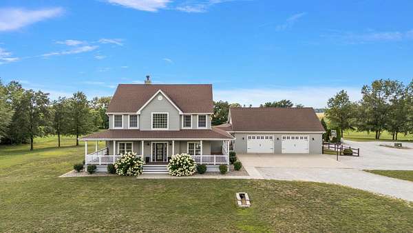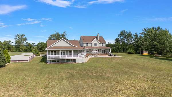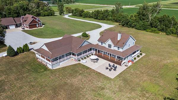 Elegant Country Estate with Guest Quarters located only an hour from Chicago and low taxes! Experience refined country living in this 4-bedroom 2.5-bath with a full finished basement. Just around the wrap around porch is a stunning guest suite. This amazing property also has an additional private suite beneath the garage on 4.16 manicured acres, this home offers the ideal blend of elegance, space, and versatility. The main floor showcases a luxurious primary suite, a bright open-concept living area, and an updated kitchen that perfectly balances style and functionality. Expansive windows fill the living room with natural light and capture sweeping views, while the wraparound porch creates a serene space to relax and enjoy the outdoors. The guest house, situated just off the porch for privacy, includes a spacious living room, kitchen, dining area, bedroom, and bath. Below the garage, an additional living suite provides its own kitchen, living area, bedroom, and bath--perfect for extended family or guests. Meticulously maintained with fresh designer paint, new plush carpet, and a recent septic service (July 2025), this property offers a perfect balance of luxury, privacy, and convenience just minutes from town. The main residence has a full house generator for peace of mind.