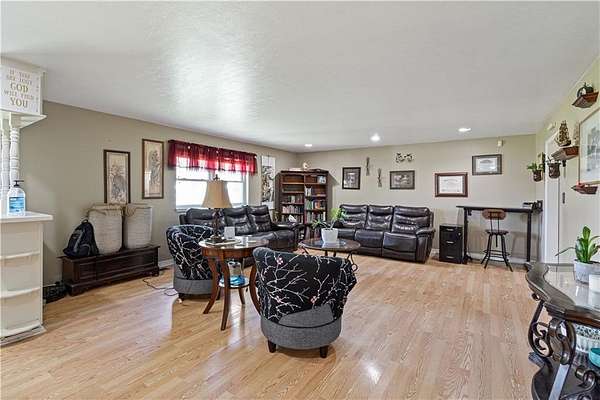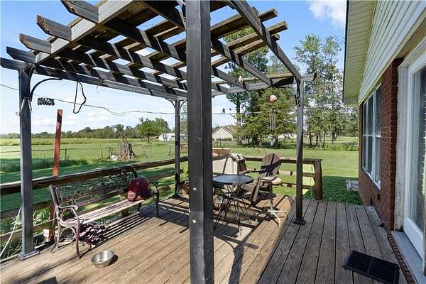 2,688 sq.ft. brick home, very livable home that has 2 great living areas, 3 and 1/2 bathrooms for your family. all the bedrooms have large closets. Extra large dinning room. Great location for family home plus a Business, car sales, storage building sales, car sales etc.. The west end of the property would be great for kids 4 H projects, a petting zoo, a pumpkin patch, commercial flowers. This property has a shared pond on the south side, divided with the fence line. The roof will be replaced.