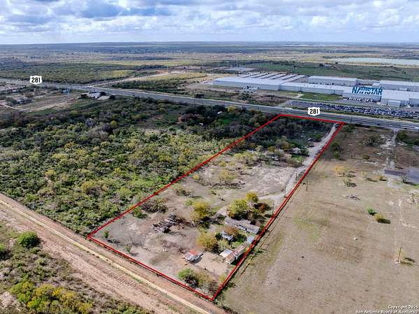 Est $13,785/moThis high-visibility 8.6-acre property offers excellent frontage along US Highway 281, with convenient access and strong development potential. Zoned for commercial use, the site includes four income-producing manufactured homes, providing immediate rental income or flexible housing options. With utilities already in place, the land is well-suited for retail, office, or light industrial development. The combination of current cash flow and future development possibilities makes this a compelling investment opportunity in a rapidly growing corridor.
