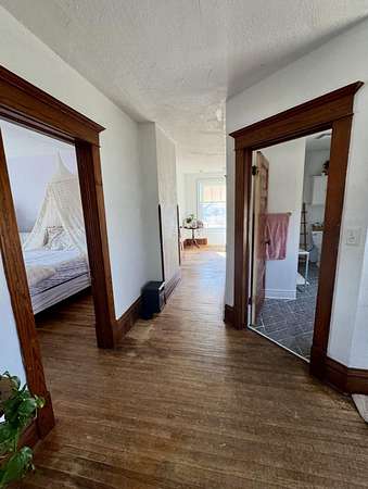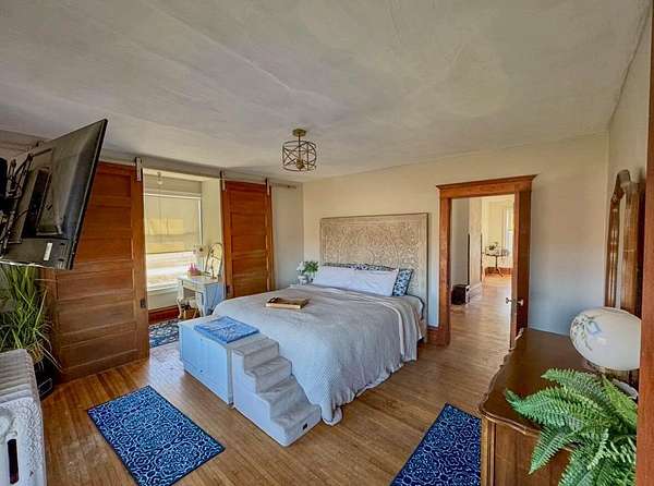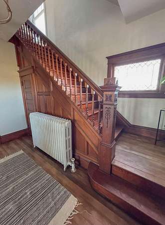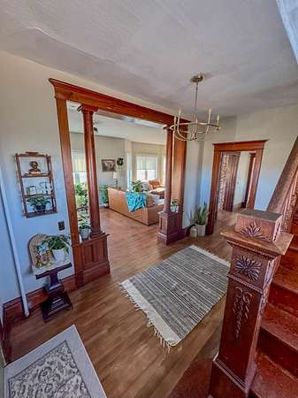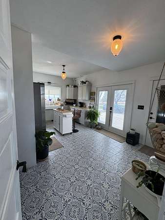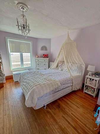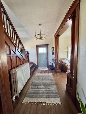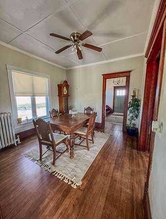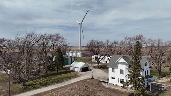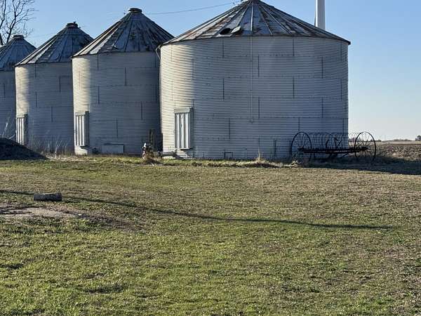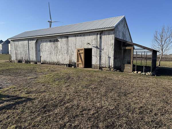 Charming farmhouse on 3.34 acres, perfectly situated on a hard-surface road, offering both convenience and country living!This 3-bedroom, 1.5-bath home features beautiful oak pillars, a classic wood staircase, and original trim that highlights its timeless appeal. Enjoy modern updates including new windows and low-maintenance vinyl siding.Relax on the inviting front porch or step out from the kitchen onto a walk-out deck--perfect for entertaining or enjoying peaceful country views. The open attic offers endless potential for additional living space, storage, or a custom finish.The property is well-equipped for rural living or hobby farming with four grain bins, a chicken coop, outbuilding, and an impressive 54x108 Morton building. A detached two-car garage provides additional convenience.This unique property blends classic farmhouse charm with functional amenities--ready for you to make it your own!