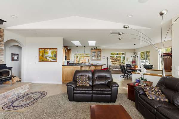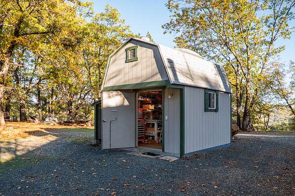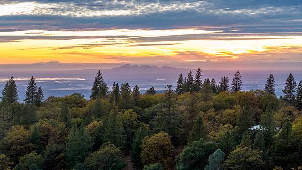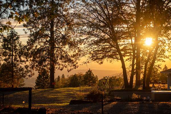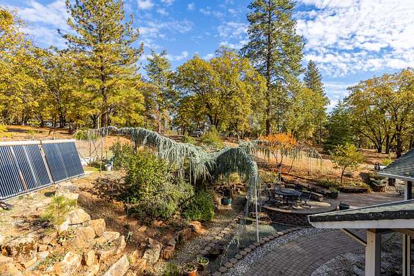 Perched atop a scenic ridge at 2,300 feet, the 320-acre Hensley Mountain Ranch offers sweeping views of the Sutter Buttes, the Sacramento Valley, and year-round sunsets that paint the horizon. Bordered by 3,200 acres of Sierra Pacific timberland and nearly 1,200 acres of California state rangeland, this property provides unmatched privacy and tranquility. Thoughtfully developed by a master road builder, a high-quality network of roads grants easy access to every corner of the ranch. Harvested for timber in 2000, the forest--composed of stately Ponderosa pines, oak, and cedar--has been carefully thinned and maintained to promote forest health and reduce wildfire risk, a testament to which is CalFire's decision to stage equipment here during the 2019 Cascade Fire. The land is fully perimeter and cross-fenced, with gated pastures and water troughs ready for livestock. Outdoor recreation has long been at the heart of family life here--horseback riding, off-road adventures, and hunting for turkey and deer have spanned three generations. A serene half-acre pond, stocked with bass and bluegill, sits beside a small fruit orchard irrigated by the same well. For the sports enthusiast, the ranch also offers a pistol range with four bays, a rifle range, and open spaces perfect for archery practice. Collins Lake is less than 5 miles away, offering even greater access to outdoor recreation. The comfortable 1,925-square-foot main residence features two bedrooms and two bathrooms, powered entirely off-grid by solar arrays with premium battery storage (recently upgraded) and a diesel generator backup. Large west-facing windows frame breathtaking sunset views, while a studio apartment above the two-car garage provides a third bedroom, bathroom, and a balcony overlooking the valley. Nearby, a 2,400-square-foot metal shop--with epoxy-coated floors, large roll-up doors, storage racks, offices, a loft, and a wood stove--serves both practical and recreational purposes. Between the home and shop, a sturdy 40' x 21' x 16' pole barn shelters the ranch's heavy equipment, completing this well-appointed mountain retreat--a perfect balance of self-sufficiency, natural beauty, and family tradition.