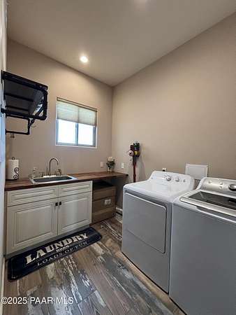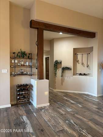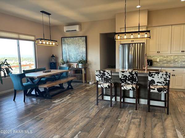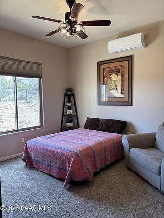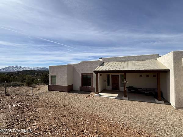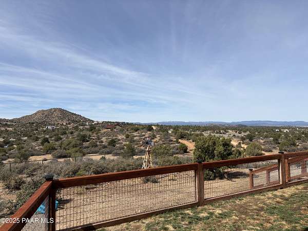 Welcome to this stunning custom home with breath taking views of Granite Mountain built in 2023. This 4 bedroom, 3 full bathroom retreat is situated on a generous slopping hilltop encompassing 5.45 acres and is perfect for animal lovers offering ample space for horses, farm animals and more. Enjoy your fully fenced 3/4 acre animal sanctuary with tack room and barn. Solar gate entry takes you into your fully fenced front yard while your back yard also allows for privacy offering a fully fenced acre for you to enjoy. The massive covered back patio has a hot tub to soak up the expansive views by day or enjoy the incredible stars by night. Inside this gorgeous home you will find a contemporary farm house vibe that flows beautifully with its split floor plan. This home is a must see!
