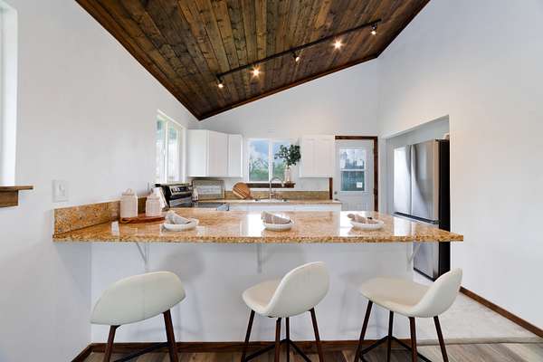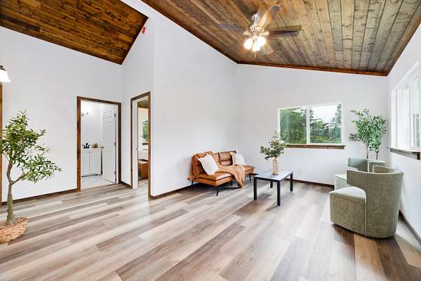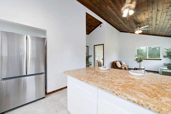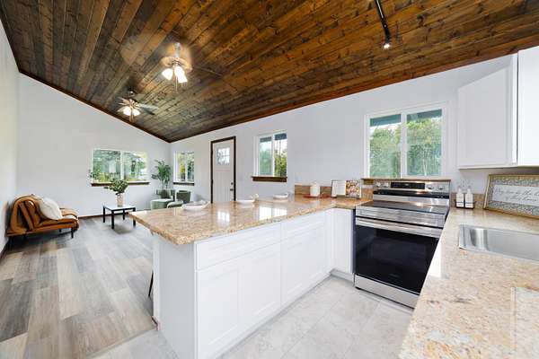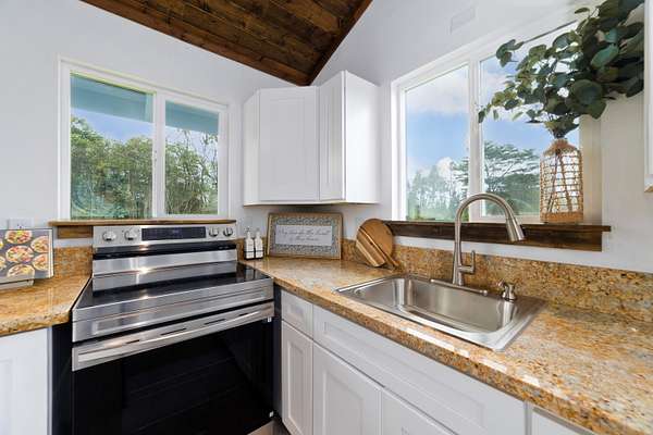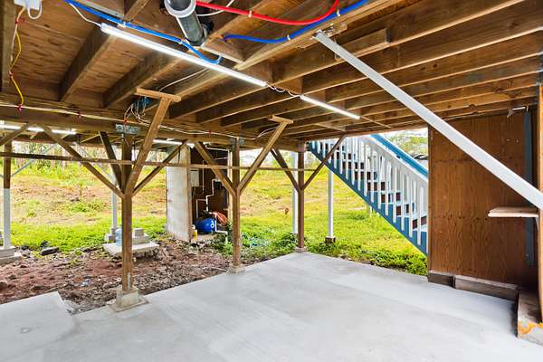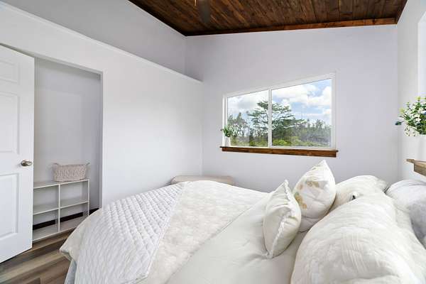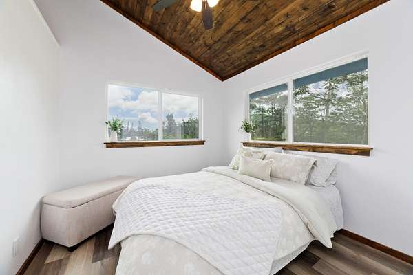 Permitted as a 1 bedroom but has 2 extra rooms! Priced at just $389,000, this newly renovated home in Hawaiian Paradise Park offers a great blend of comfort, space, and value. Conveniently located between Paradise Drive and Kaloli Drive, the property sits on a full one-acre parcel and benefits from its elevated setting with cool trade winds and views over the land. The upstairs living area features a new kitchen with brand-new appliances, along with two bedrooms and a comfortable, open feel. Downstairs, you'll find a versatile extra room that works well as a home office, home gym, or storage space, plus a dedicated laundry area. A propane instant water heater adds efficiency and on-demand hot water. Outside, the land offers natural, gently hilly terrain-ideal for gardening, landscaping, or even grazing sheep. The front of the property is fenced and dated, providing a starting point for future improvements. This move-in-ready home is a solid opportunity to own acreage in one of East Hawaii's most popular neighborhoods at an accessible price point.