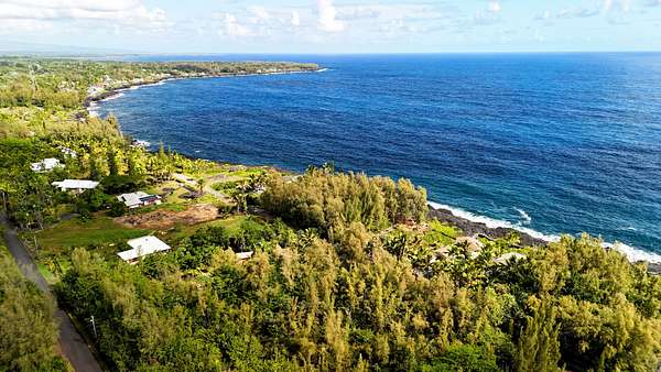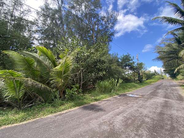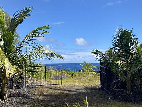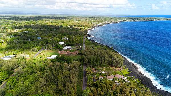 A rare find near the ocean! Enjoy morning walks along Beach Road, breathtaking sunrises, fresh ocean air, and the soothing sound of waves crashing on the nearby sea cliffs. Ocean-minded buyers will appreciate this approximately 1-acre lot ideally situated between Beach Road and 1st Road, where views peer over the road and an adjacent cleared lot toward the Pacific Ocean. Tropical breezes, sunny skies, and a true coastal lifestyle make this an exceptional setting to build your dream home. The property offers dual access from both Beach Road and paved 1st Avenue, creating flexibility for your new build. This layout may allow for a separate ohana unit, garage, or workshop at the rear of the property. There is ample space to plant tropical fruit trees and create a lush island landscape. The surrounding homes reflect pride of ownership, with colorful landscaping and a distinctly Hawaiian ambiance. A permitted HPM set of house plans is included, providing a valuable head start toward construction. Note: Boundary lines in photos are approximate. Photo looking towards ocean with the metal gate is a vacant lot owned by the neighbor across the street. Please do not enter that property as per the owner's notice.
