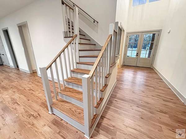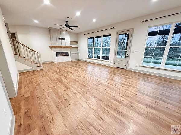 Discover an incredible home in PGISD that you won't want to miss! With soaring ceilings and stunning floor-to-ceiling windows, this residence is filled with natural light. Featuring four spacious bedrooms, each with its own bathroom, plus a flexible office/game room, this home balances comfort and functionality. Enjoy your morning coffee on the wrap-around porch, surrounded by beautiful hardwood trees and a tranquil neighborhood lake, all on 2 acres of land-perfect for family fun or a pool! The craftsmanship shines through in every detail, with an open-concept living area showcasing 10-foot ceilings and elegant honed granite countertops. The cozy family room includes an electric fireplace adorned with shiplap, leading into a striking kitchen with ceiling-high cabinets and designer lighting. Check out the attached floor plan for a glimpse of the luxurious master suite, inviting living space, kitchen, and convenient powder room. There's also floored storage above the garage for organization. Enjoy the expansive outdoor patio with a vaulted ceiling-perfect for beautiful spring and fall days. This home is equipped with modern amenities, including tankless water heaters and a sprinkler system ready for your personal touch. Come see this hidden gem for yourself!