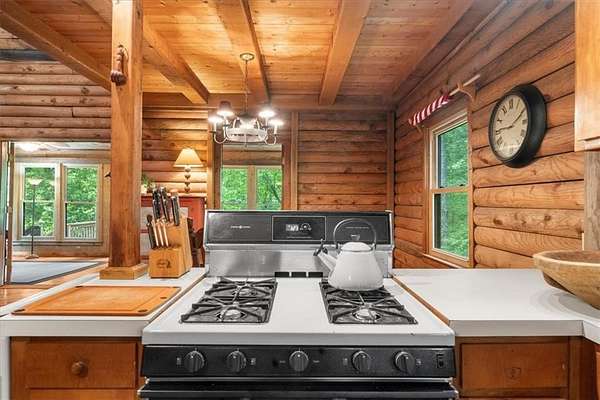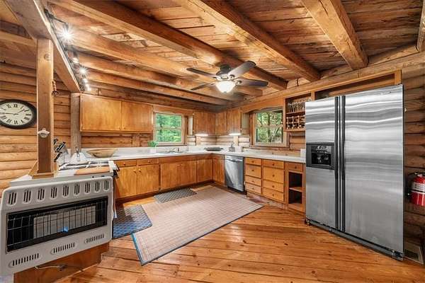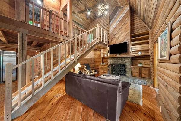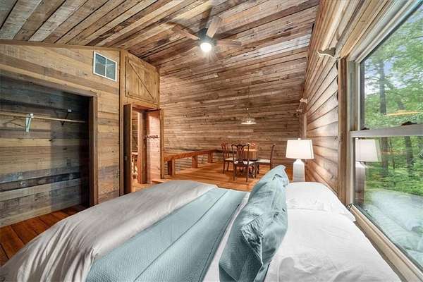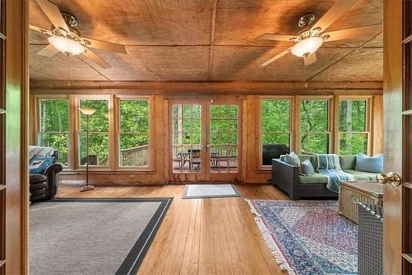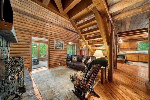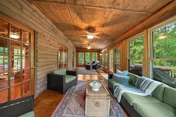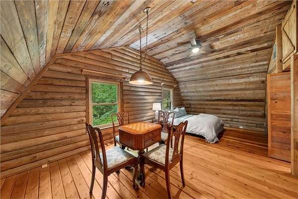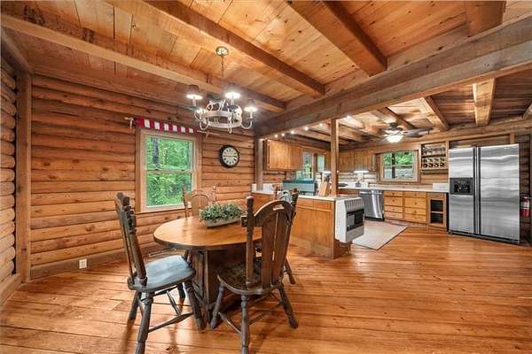 Welcome home to your new lake front retreat! Located on the Sioux Lake, a private lake, in the Dakotah East Subdivision. This exceptional log cabin sits on 1.51 acres and includes a boat dock and outbuilding. The interior is an open concept floor plan built with beautiful reclaimed railcar wood, Georgia heart pine wood floors, vaulted ceilings, and new light fixtures and ceiling fans throughout. As you enter the cabin you are greeted with a large kitchen, breakfast area, pantry, full bathroom, real burning stone fire place, built in bookcases, beamed vaulted ceilings and 2 living spaces. A beautiful interior staircase, leading to the 2nd floor loft, was built in April 2025. The loft has vaulted ceilings and boasts a primary bedroom with large sitting area, a full bathroom and a 2nd bedroom. There is an unfinished daylight basement with a 3rd bedroom, a partially finished full bathroom and kitchenette. The exterior logs were recently cleaned, treated and re-stained in the fall of 2024. The roof was replaced in 2019 with Owens Corning Duration Roofing and comes with a transferable Platinum warranty. The windows were replaced in 2019 with premier double hung ENERGY STAR efficient windows with a lifetime warranty. The septic tank was inspected and pumped in 2025. The exterior stairwell off of the back deck was replaced in April 2025. This well maintained retreat is located less than a mile from Banning Mills and 10 minutes from Downtown Carrollton. Banning Mills features zip lining, horse back riding, a pool, miniature golf, team building activities and on site cabins. Downtown Carrollton is filled with great restaurants, shopping and an outdoor amphitheater. You could not ask for a better location for everyone to enjoy.