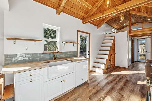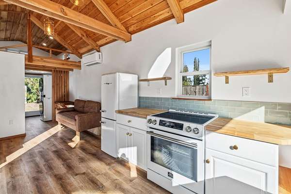 Custom tiny home with active permits to rebuild on a flat 1 acre parcel. When you close your eyes and imagine what the perfect tiny home setup would be on a Santa Cruz mountain property - this is exactly that concept, brought to reality. This 280 sqft custom built tiny house on wheels includes sleeping loft, full kitchen, breakfast nook, full bathroom, mini split heating/ cooling, dual pane windows, and full laundry all wrapped in finishes common to newly built custom homes. The flat, rectangular 1.08 acres includes tree lined driveway, functioning 1500 gallon septic, private well water with pressurizer pump, and permanent 200 amp panel from PGE installed on site. Also included is a garden shed, 40 ft shipping container wired (but not electrified) to be a shop, taller than average carport (large enough for a small/ medium RV, boat, or trailer). Plans have been submitted for permits and are available for review for a 3 bed 2 bath home at about 2,300 sqft with a detached 2 car garage with rumpus room above. The seller's intention is to sell the property with active permits for this build on or before close of escrow. The lot offers some mixed woods, full sun, and every square foot of it is useable which is rare in the mountains with easy access to Santa Cruz, Felton, and Davenport