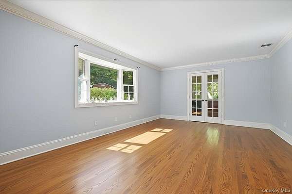 Discover this thoughtfully expanded ranch-style residence, featuring three generously sized bedrooms and two and a half bathrooms, all set on two serene acres. The spacious interior is ideal for hosting gatherings, with an inviting eat-in kitchen showcasing sleek granite countertops and a charming bay window. The open layout offers flexibility and room to grow, complemented by gleaming hardwood floors throughout. Recent upgrades include a new hot water heater and burner. Whether you're starting a new chapter or looking for a peaceful retreat, this home is a rare find. Don't miss this wonderful opportunity to make this your own. All in Harborfields School District #6.
