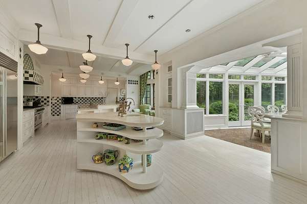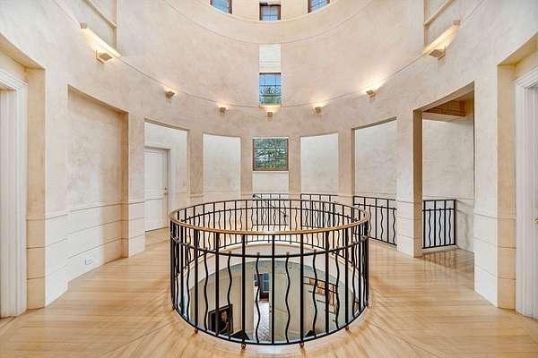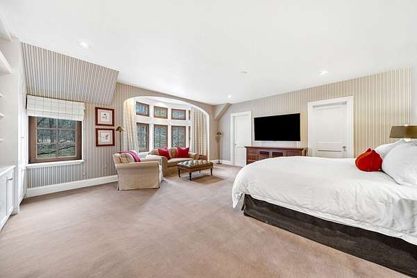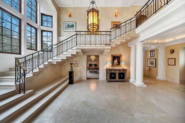 Set on 3.75 acres of beautifully landscaped grounds, this extraordinary Country Manor was designed by architect Thomas Catalano with landscape design by Morgan Wheelock. Positioned on a gentle slope overlooking sweeping lawns, the home offers a peaceful and private setting. The exterior blends finely finished stucco with Dolomitic limestone and Chelmsford granite, topped with a Vermont slate roof and mahogany windows by Tischler. A striking stone foyer and cantilevered limestone staircase highlight the home’s exceptional craftsmanship. Designed for modern living, the residence features a four-season conservatory, wine cellar with tasting room, fully equipped gym, and state-of-the-art media room. At its center, a dramatic three-story rotunda rises above a circular oak staircase with hand-wrought railings. The home includes seven bedrooms, a private guest apartment with full kitchen, four-car garage, pool, tennis court, and specimen-planted grounds.