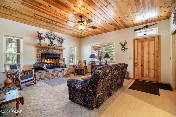 FOREST RETREAT A Rare Find in Nutrioso - 5.2 Fully Fenced Acres with Gate!** TWO PRIMARY SUITES & BRAND NEW A/C UNIT Nestled in the serene beauty of the majestic White Mountains, this charming 3-bedroom, 2-bathroom home offers the perfect blend of comfort and privacy. With 5.2 acres of fully fenced land, you'll enjoy both seclusion and ample space for all your outdoor pursuits. Inside, a cozy family room welcomes you with tall windows that bathe the space in natural light, complemented by a wood-burning fireplace. The home features two primary suites, one on each floor each offering its own fireplace, wood stove, and inviting sitting areas. The second-floor suite also boasts a private balcony, perfect for relaxing and taking in the stunning wildlife and peaceful surroundings. The home's thoughtful design includes a spacious kitchen with large windows, creating an open and airy atmosphere. A separate dining room off the kitchen is ideal for meals with family or guests. The fantastic mud/laundry room includes a convenient clothes folding area, and the huge walk-in pantry ensures you're always prepared for entertaining. The master suite is a true retreat, featuring large walk-in closets and a luxurious soaking jacuzzi tub. The back deck is perfect for outdoor gatherings, whether hosting friends or enjoying a Sunday barbecue. For added convenience, there's a two-car garage/workshop for all your gear and toys, plus a private well with substantial water storage. The property is beautifully wooded with pine trees and offers plenty of space for parking or turning around. This unique property offers privacy and tranquility, making it the perfect sanctuary in the White Mountains. Nutrioso is renowned for its breathtaking views and abundant wildlife, offering world-class hunting and fishing opportunities. With pristine lakes, rivers, hiking trails, and off-road paths to explore, this charming small town is filled with friendly faces. Plus, it's just a short drive away from the Sunrise Ski Resort, making it a perfect destination year-round.