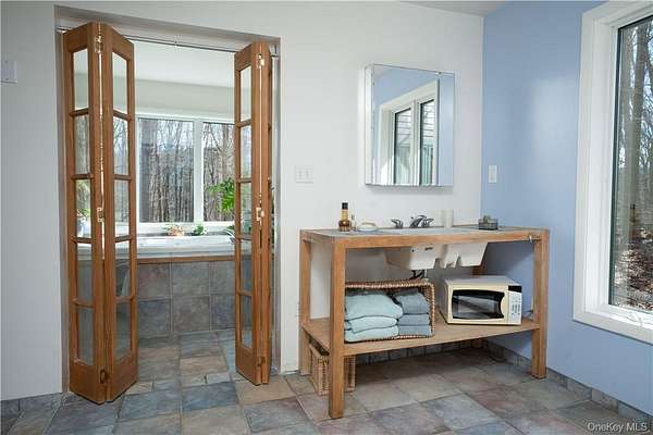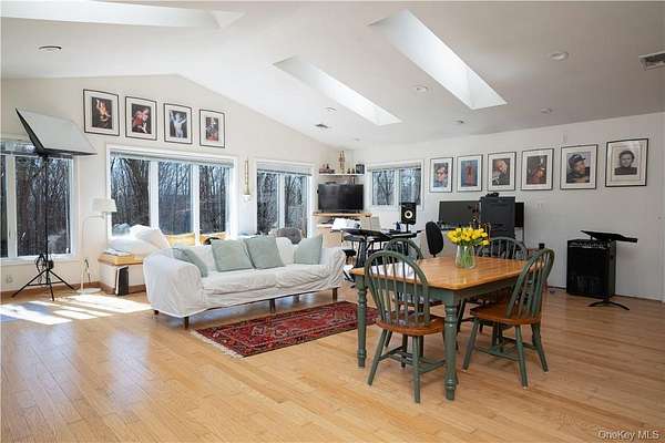 "6,227 SF on 37.7 Acres" - Escape the ordinary and rediscover your sense of wonder at this sanctuary set on 38 private wooded acres in the rolling hills of Warwick, NY, just under an hour from New York City. Tucked into a pristine mountain landscape with a mile of old stone walls, private hiking and cross-country ski trails, this self-sustaining estate offers a rare blend of architecture, artistry, and nature. Conceived by world-renowned rock & roll photographer Waring Abbott, the main residence spans over 6,200 square feet of striking contemporary design, where glass, light, and landscape converge in harmony. With 4-5 bedrooms and 2.5 bathrooms, the home is grand yet grounding. Japanese inspired landscaping intends for the outdoors to feel natural, moss, rocks and gravel blend with wooded forest to create spaces of deep tranquility and transcendent beauty. Expanses of floor-to-ceiling glass frame the ever-changing woodland views, while radiant heat, multiple fireplaces, and rich hardwood floors create a cocoon of warmth and modern comfort. The primary suite, overlooking a tranquil stream and the expansive koi pond, is a retreat in itself, complete with an Irish wood-burning stove for evenings of quiet reflection. A separate wing houses a vast creative studio or office, with its own entrance and parking, ideal for remote professionals, or entrepreneurs seeking a truly inspiring work-from-home environment. An additional bonus room above the office is the perfect place for a home gym. The open chef's kitchen offers views of the upper pond and access to a patio for seamless indoor/outdoor living as well as an expansive pantry. Meanwhile, a detached 2,400 sq ft barn expands the possibilities, featuring guest quarters with a full kitchen and bath, open studio space, 14' ceilings, and a separate workshop. Car collectors will appreciate 6+ indoor parking spaces, including a 3-car garage at the main house and ample barn storage. Beyond its artistic pedigree and natural beauty, this property is a haven for those seeking serenity and space with the freedom to keep horses for personal use. Zoned Mountain Residential, the land supports horses, and with established trails already on-site, it's ready for equestrian adventure. Whether you're envisioning an off-the-grid lifestyle while still close to incredible nearby amenities, or simply a weekend escape, the possibilities are as expansive as the landscape itself. Located within both the Warwick Valley Central School District and Chester UFSD, and in the sought-after Warwick High School zone, 15 Cox Drive blends pastoral beauty with academic prestige. Surrounded by the best of the Hudson Valley, from Warwick's acclaimed wineries, breweries, and orchards, to the sailing, hiking, and skiing adventures of Greenwood Lake, Sterling Forest, and Harriman State Park, this is a place where the seasons inspire your next chapter...