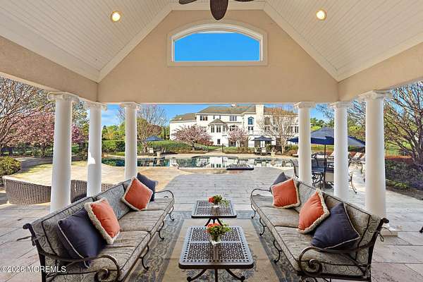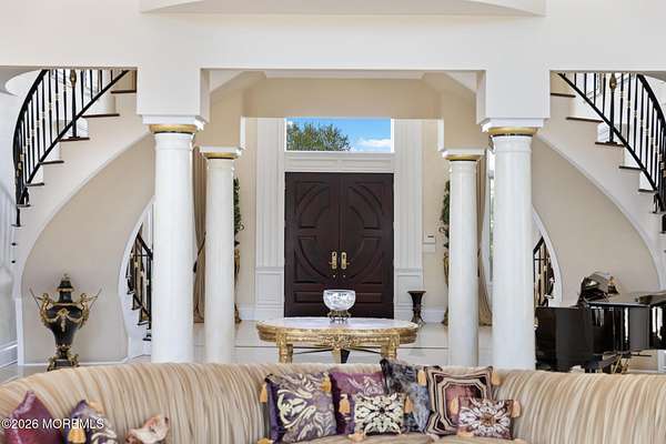 Rare gems like this in Due Process Estates don't come along often. One of New Jersey's most prestigious and sought-after communities, it sets the standard for luxury living in Colts Neck. Every finish, every surface, every system reflects one standard: nothing compromised. The result is a home where thoughtful design and quality craftmanship are evident at every turn. Set on 3.4 Acres, over 11,000 sq ft of fully custom living space w/ 7 bedrooms, 8 and half baths, 3 fireplaces, built for the way a family actually lives and entertains. A soaring 2 story foyer, chef's kitchen, formal and casual spaces that flow effortlessly, crowned by a primary suite that feels like a world of its own. Bedroom suites on the second floo feature valuted ceilings, ensuites and custom walk-in closets. a level of finishes rarely seen beyond the primary suite. A dedicated home cinema, billard room w/ custom bar, wood paneled office, finished basement w/ additional bedroom, kitchen, game room, and 2 professional gyms, and dual double garages on each side of the property make this home that truly has it all. Outside, the grounds are nothing short of spectacular. A resort style backyard w/ gunite salt water pool w/jacuzzi, fire pit, built-in grill, custom all season pool house. Expansive raised travetine patio w/ additional built-in grill, professional landscaping, and complete privacy make this a home you'll never want to leave and a true wow factor for every guest. Adjacent to the highly acclaimed Due Process Golf Club, w/ easy access to beaches, parks, stables, shopping and multiple routes to NYC.