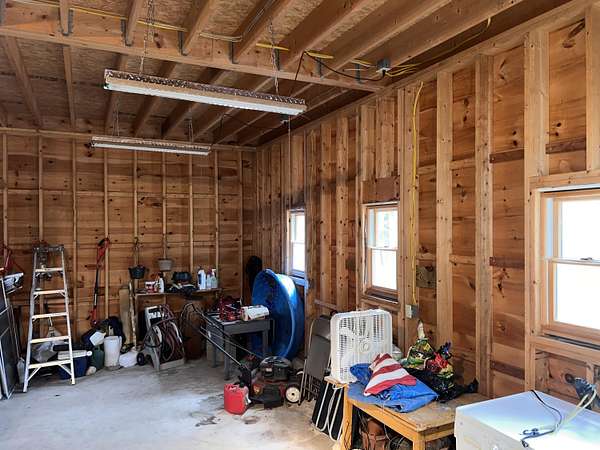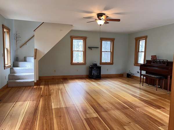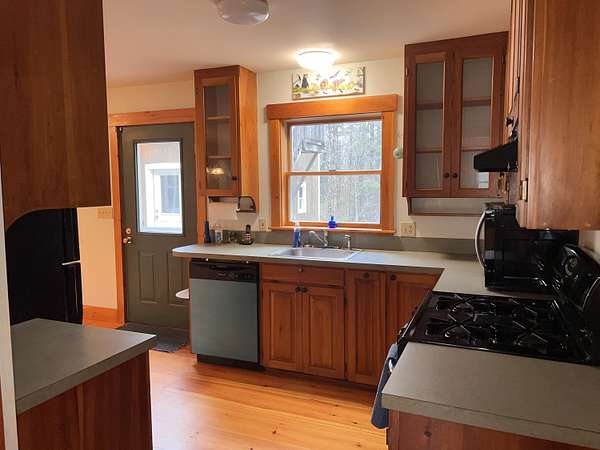 Nestled on 2.6 acres of wooded land with a Spring Lupine & daylily meadow, this custom-built 3-bedroom, 2-bath Cape offers a flexible layout and functional living space in a convenient yet private Midcoast location. A tiled entry leads to an open living area with pine wood flooring and a gas stove. A private staircase accesses a large bonus room, providing additional living or recreational space. A spinet piano will convey as personal property. The main level includes a spacious dining area, the kitchen (including new dishwasher and microwave), a full bath with updated laundry appliances, and a flexible den, bedroom, or office space. The attached two-car garage offers direct entry and includes an unfinished 24x24 space above, already wired and offering potential for future expansion (subject to verification and applicable approvals). Outdoor features include a backyard deck and patio area suitable for seasonal enjoyment. Additional systems include a private well and septic, forced-air heating, and a Kohler whole-house generator. A full basement and attic provide additional storage. Convenient to local services and located near Biscay Pond, a public access point for swimming, boating, and recreation. Suitable for year-round living or potential short/long term rental use.