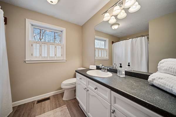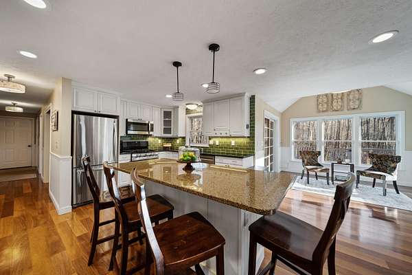 Discover this beautifully maintained 4 bedroom Colonial, set on 2.62 acres of private, wooded land in one of Merrimack's most desirable neighborhoods. Offering 2,656 sq ft of thoughtfully designed living space, this home combines classic architecture with modern comfort in a truly exceptional setting. The main level welcomes you with an open flow ideal for both everyday living and formal gatherings. The spacious family room features a cathedral ceiling, abundant natural light, and a warm, inviting atmosphere. The kitchen provides generous workspace with an island, ample cabinetry, and a bright dining area overlooking the serene backyard. Hardwood flooring enhances the home's character and continuity throughout much of the first level. Upstairs, the well-appointed primary suite offers a peaceful retreat with a walk-in closet and private bath. Three additional bedrooms, along with a convenient second-floor laundry room, complete the upper level, offering comfort and practicality for today's lifestyle. Recent updates include a newer roof, refreshed interior paint, and exterior improvements. Additional features include central air conditioning, firelace, a wraparound deck, a walkout basement with expansion possibilities, generator hookup, and an attached two-car garage.Set on a beautifully private lot with ample space to enjoy the outdoors, this home presents the ideal blend of tranquility and country living.Showings delayed to 12/7. Open House 12/7 @ 2-4pm
