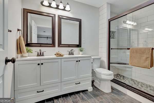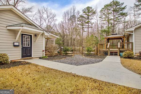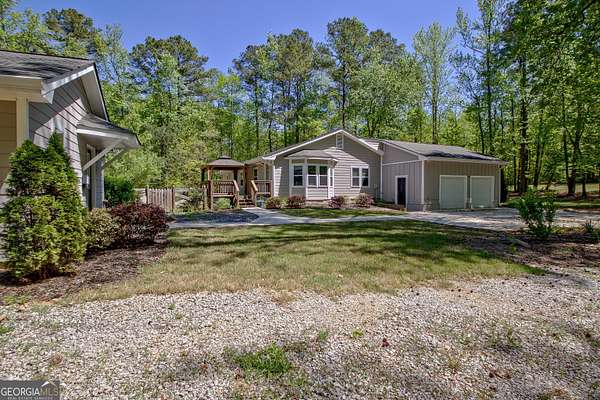 Nestled on 2 private acres, this versatile property offers exceptional space and flexibility with room for everyone. The main home features 3 bedrooms and 3 baths, with fresh interior paint and new carpeting on the main level for a clean, move-in ready feel. The kitchen is equipped with granite countertops and stainless steel appliances, blending style and functionality for everyday living and entertaining. A bonus room over the garage provides flexible space for an additional bedroom, home office, or media room. The finished basement includes its own separate exterior entrance and has been freshly painted with new luxury vinyl flooring throughout. Complete with a bonus room, office or bedroom option, full bath, and wet bar, this level offers ideal space for entertaining, extended stays, or private living quarters. Adding even more value is the detached guest house/in-law suite. Fully equipped with 1 bedroom, 1 bath, a kitchen, spacious living and dining area, and a laundry closet, this separate residence offers excellent potential for multi-generational living, long-term guests, or additional income opportunities. All of this on 2 acres while remaining conveniently located to Peachtree City and Newnan, and approximately 20 minutes from Hartsfield-Jackson Atlanta International Airport-offering privacy without sacrificing accessibility.