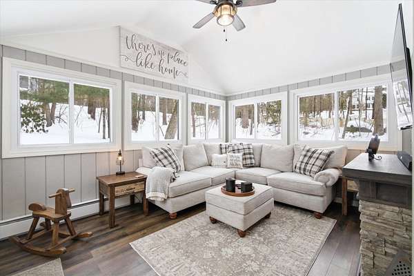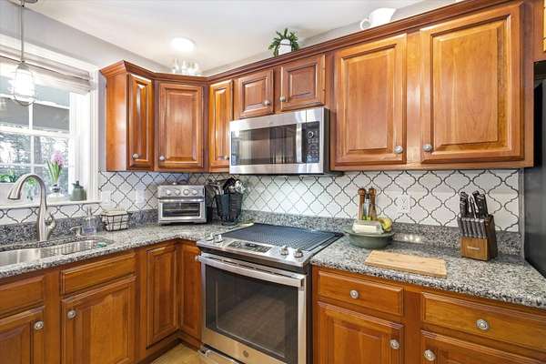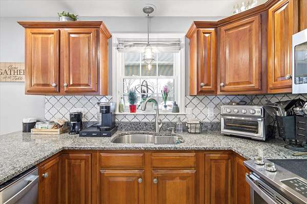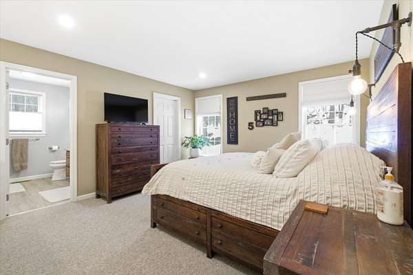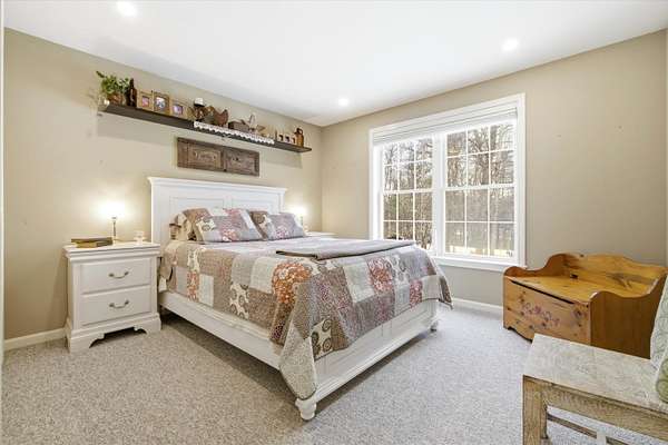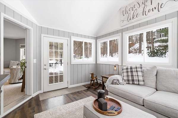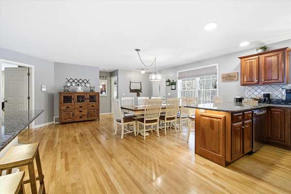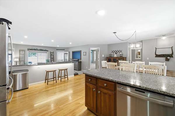 Welcome to this beautifully maintained Bedford home set on a private 1.5 acre lot, offering the perfect balance of comfort, efficiency, and modern updates. With 2,372 sqft of finished living space, this 3 bedroom, 1.75 bath residence provides flexible living designed for today's lifestyle. Step inside to an inviting open concept main level featuring hardwood floors, abundant natural light, and a spacious kitchen ideal for gathering and entertaining. The kitchen showcases granite countertops, under cabinet lighting, stainless steel appliances, and a rare walk in pantry for exceptional storage. Just beyond, a sun filled dining area which flows seamlessly into the comfortable living room. A standout feature is the sunroom, offering panoramic views of the private backyard, the perfect retreat for morning coffee, reading, or unwinding year round. Step outside to the newer deck, ideal for outdoor dining and entertaining in a peaceful wooded setting. 3 generous sized bedrooms and two bathrooms complete the main level. The partially finished lower level adds valuable versatility for a family room, home office, gym, or hobby space while still providing ample storage. Major improvements and efficiency upgrades include a new roof in 2022, doubled up attic insulation for energy savings, portable generator hoookup, whole house humidifier and air purifier and 2 EV chargers for your electric vehicles. Additional highlights include spacious bedrooms, updated baths, and thoughtful touches throughout that reflect pride of ownership. Located in one of Bedford's most desirable areas, this home offers privacy while remaining close to top-rated schools, shopping, dining, and commuter routes. Move in ready, energy-conscious, and perfectly positioned. This is Bedford living at its best. Schedule your private showing or come visit us at one of our Open Houses on Saturday 2/21/26 and 2/22/26 from Noon to 2pm