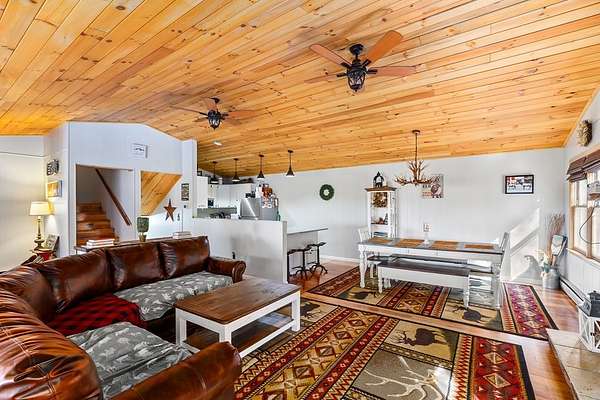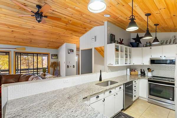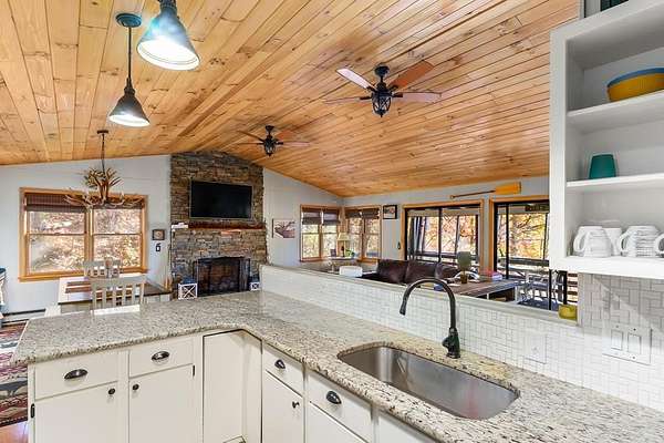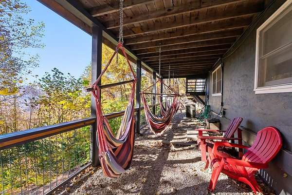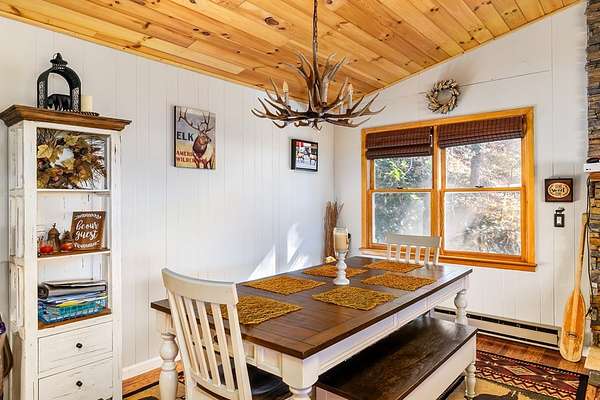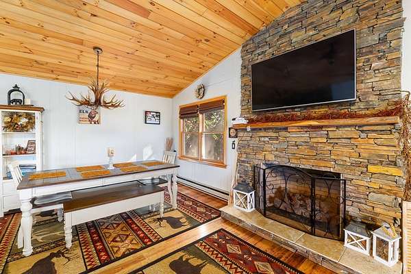 Welcome to your mountain escape nestled in the Western North Carolina Mountains, perfectly located between Sylva and Franklin. This beautifully furnished 4-bedroom, 3-bath home offers the ideal blend of comfort and style. Warm wood accents, a stone fireplace, and vaulted ceilings create a cozy, inviting atmosphere throughout the open living, dining, and kitchen area. A wall of glass doors off the living room opens to the screened-in porch, seamlessly expanding the living space and inviting you to enjoy the fresh mountain air and peaceful views. The primary suite provides an ensuite bath, while the spacious guest rooms ensure comfort for all. The lower level is perfect for entertaining, with a game and TV room plus its own bedroom and bath - ideal for guests or family. Set on a 1.57+/-acre private lot with a 2-car garage, ample storage, new HVAC, and easy year-round access, this home offers the perfect mountain getaway or full-time family retreat.