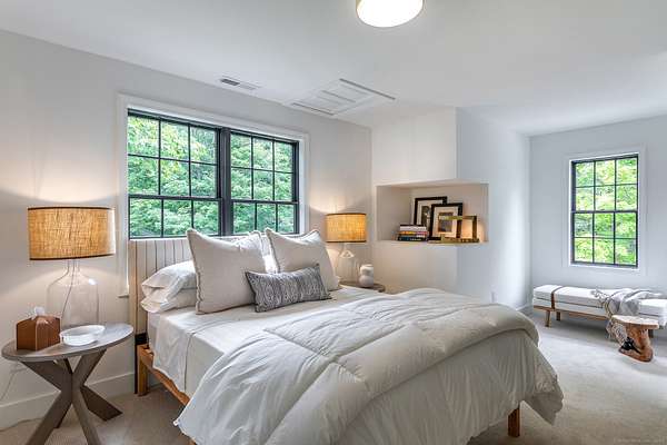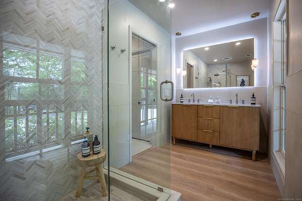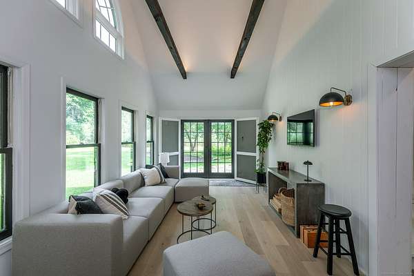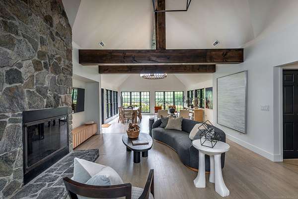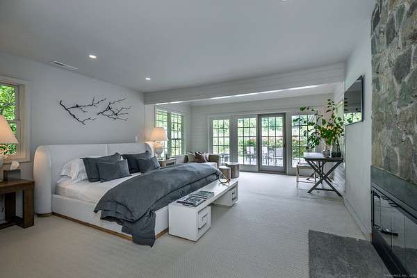 Contemporary elegance on one of Sharon's most prestigious addresses. A classic pea stone driveway leads to this newly renovated and glamorous 3 BDR/3 Bath country home in a stunning natural setting with interiors designed by the NY-based firm Majordomo Lifestyle Architecture. Sleek sophistication abounds with gracious vaulted ceilings in the living room, anchored by a striking stone fireplace. The living room flows seamlessly into an expanded sunroom bathed in natural light - perfect for intimate dinners and grand entertaining with access to the patio. The updated eat-in kitchen serves as the heart of this modern masterpiece, with top of the line appliances and ample storage. Luxurious accommodations include an enlarged en-suite Primary BDR with fireplace on the main floor and access to the patio, and 2 spacious en suite bedrooms upstairs. Every space has been thoughtfully renovated to blend contemporary comfort with timeless charm. 2-car detached garage/barn offers extraordinary storage/work/studio spaces. Herrick Road places you at one of the finest locations in Sharon known for its exceptional estates and natural beauty. This home is a lifestyle statement in one of Litchfield County's most desirable communities. Enjoy this idyllic setting where cattails whisper in the breeze and privacy reigns supreme. Private schools nearby: (Hotchkiss, Kent School, Salisbury School, Millbrook School), skiing at Mohawk and Catamount, Sharon Playhouse, and Audubon. 2 hours to NYC.