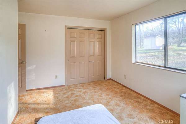 Enjoy peaceful country living on this private 7.42-acre retreat, just a short drive to town. This 1,518 sq. ft. home offers 2 bedrooms and 2 bathrooms, abundant natural light from multiple sliding glass doors, and a sunken living room with vaulted ceilings and a wood-burning stove. The sunken primary suite includes a private bath, and a dedicated laundry room with sink adds convenience. Home needs TLC, offering great potential to personalize and build equity.