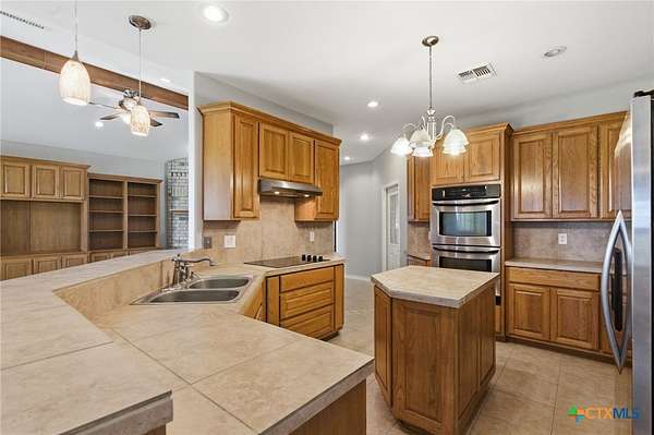 - Bookcases, Breakfast Bar, Built In Features, Ceiling Fans, Coffered Ceilings, Dining Area, Double Vanity, Entrance Foyer, Garden Tub Roman Tub, His And Hers Closets, In Law Floorplan, Multiple Closets, Multiple Dining Areas, Pull Down Attic Stairs, Recessed Lighting, Separate Formal Dining Room, Separate Shower, Shower Only, Split Bedrooms, Tile Counters, Walk In Closets