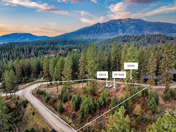 Gorgeous ~1.82 acre View Lot in Garden Valley is ready to build your dream home or cabin! This exceptional property in the desirable North Ridge at Terrace Lakes Subdivision borders the scenic back nine of the Terrace Lakes Resort Golf Course. Septic system already in place, an approved 2nd septic for guest house planned for the bottom of the hill, & electricity to property. Enjoy a convenient 14x22 shed w/ a loft & power- if insulation added could be temporary living space while you build. Also, find an RV pad w/ hook-ups & deck. No time limit to build. Lot is timbered w/ a view at the end of cul-de-sac. Monthly fees of $92 include water & road maintenance. Access to Terrace Lakes Resort amenities w/ add'l membership: 18-hole golf course, year-round geo-thermal pool, pickleball courts, restaurant & lounge. Close proximity to Payette River & charming town of Crouch w/ shopping, dining & entertainment. Only 50 miles from Boise. Don't miss this rare opportunity to own a prime mountain property!