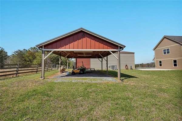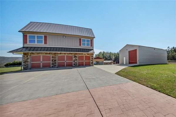 Welcome to your own private mountain retreat, perfectly situated on 4 flat, fully fenced acres with breathtaking 180 degrees panoramic views of Pine Log Mountain. This extraordinary 5-bedroom, 4-bathroom traditional two-story home is truly a 10 out of 10 - a one-of-a-kind property where luxury, functionality, and craftsmanship meet at every turn. From the moment you arrive, you'll notice no detail has been overlooked. This fully automated, wireless smart home is controlled entirely from your phone, with automatic lighting throughout every inch of the property - making modern convenience as effortless as it is impressive. The main home boasts a stunning gourmet kitchen featuring all-new appliances, double ovens, double dishwashers, a glass washer, pop-up island ports, a wine cooler, walk-in pantry with built-in shelving, and solid wood custom cabinetry. The spacious primary suite is a true sanctuary, complete with heated floors in the primary bath, a spa-inspired shower with Bluetooth vent and speaker, a dedicated tankless water heater, and custom built-in closet shelving. Motorized shades in all bedrooms and the living room, along with a large laundry room with dual washer and dryer hookups, add everyday luxury and convenience throughout. Built for the entertainer and the self-sufficient alike, this estate features a guest house with its own washer and dryer, a fully conditioned 32x50 accessory/utility building/garage (think motorcycle or car collection), a powered and lit pole barn, a separate 12x16 shed, and a spectacular outdoor party pavilion complete with a kitchen, heating and air, epoxy floors, and a private restroom - ideal for hosting on any scale. The property is further equipped with a Tesla solar system with 2 Powerwalls and 3 additional batteries, dual propane system with generator hookup, 2 tankless water heaters, a whole house water softener and filtration system, 2 separate septic tanks, and an upsized water line - making it as efficient and capable as it is beautiful. Outside, enjoy a large playground, a 30 ft. lit flag pole, epoxy sidewalks and garage floors, a new metal roof with gutters and downspouts, and acres of flat, clear land with tremendous potential - including the ability to easily convert into a premier equestrian estate. This is more than a home. It's a lifestyle - and no description could ever do it justice. You simply have to see it in person to truly appreciate everything this remarkable property has to offer.