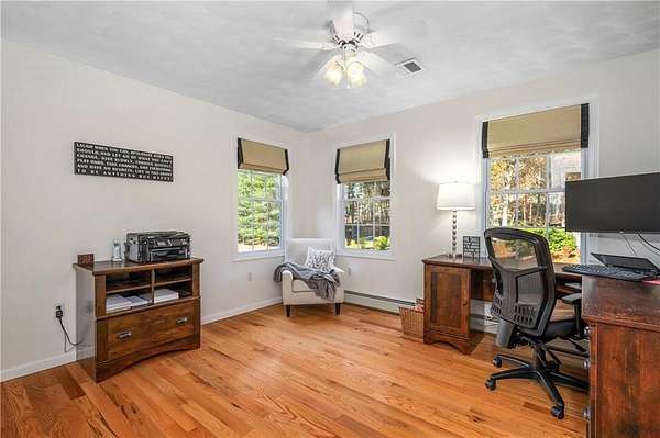 Welcome home to this mint-condition, original owner, like-new Colonial offering over 3000 square feet of elegant yet comfortably cozy living in a sought-after North Smithfield neighborhood. The custom kitchen with island seating opens to both formal living and dining rooms, as well as an expansive family room with a fireplace-perfect for everyday living and holiday gatherings. All four bedrooms are on the second floor, including one with a charming lofted study/reading nook. The serene primary suite features a spa-like bath with a deep soaking tub, beautifully tiled shower, and plenty of closet space. Outside you will find plenty of deck space, a fire pit for plenty to gather and make smores. Finally the finished lower level adds exceptional flexibility with a full bath-ideal for a media room, playroom, home office, gym, or guest space. With abundant storage throughout and room to live, work, and entertain, this turnkey home blends style, comfort, and convenience in one of North Smithfield's most desirable locations. PROPERTY 100 PERCENT IN NORTH SMITHFIELD WITH NORTH SMITHFIELD SCHOOL SYSTEM. MAILING ADDRESS and GPS IS HARRISVILLE RI 02830 AREA.