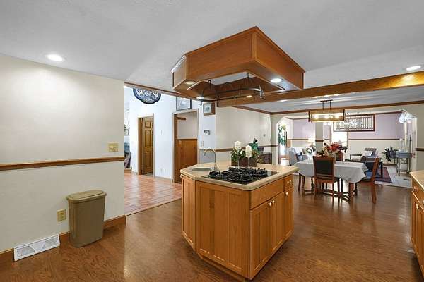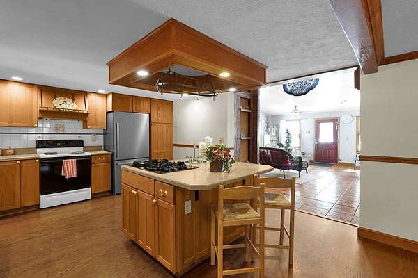 Thoughtfully-maintained farmhouse full of fascinating charm! On nearly 2 acres, This 3 bed, 2 full bath home features a spacious floor plan spanning nearly 3300 square feet. With an open concept layout from the living room to the kitchen, entertaining is a breeze! The kitchen offers amazing space with abundant cabinetry, and a functional center island. Adjacent to the kitchen is a family room with a cozy fireplace, featuring a view to the second floor loft and providing access to the wraparound porch.The 25x24 rec room, complete with a secondary kitchen, offers even more space to host friends and family for every occasion. There is a primary suite with an attached bath on both the main and second floor as well as a main-floor laundry for added convenience. The enclosed back porch provides a great space to unwind with access to the lanai and above-ground pool for summer time fun! Schedule your showing today!