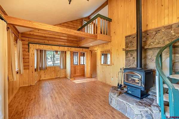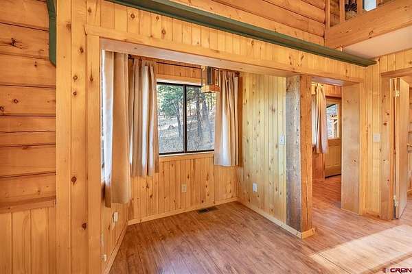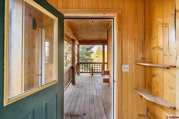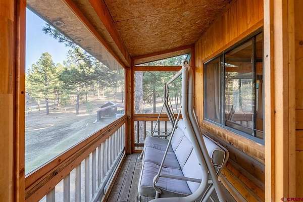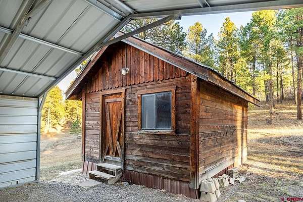 Blue Pitcher Lindner, Jann C Pitcher Real Estate, C: 970-946-1877, blue@janncpitcher.com, www.crenmls.com: Tucked into a private valley on 3.7 acres, this exceptional property offers the perfect blend of mountain charm, privacy, and breathtaking views of the Southern San Juan Mountains. The charming log home captures the essence of Colorado living, featuring warm wood finishes, a charming wrap-around covered porch, and a screened-in porch where you can relax and take in the peaceful surroundings. A private deck off the largest bedroom creates a quiet retreat with a privacy fence great for animals and young children. The land is extraordinary—usable, private, and alive with wildlife. The additional 221 square foot log cabin with power and a wood-burning stove offers endless possibilities as a guest cabin, studio, or creative space. With central water, year-round county maintained roads, and a location just minutes from town, this property delivers the rare combination of seclusion, usability, and accessibility that buyers in Pagosa Springs are searching for.